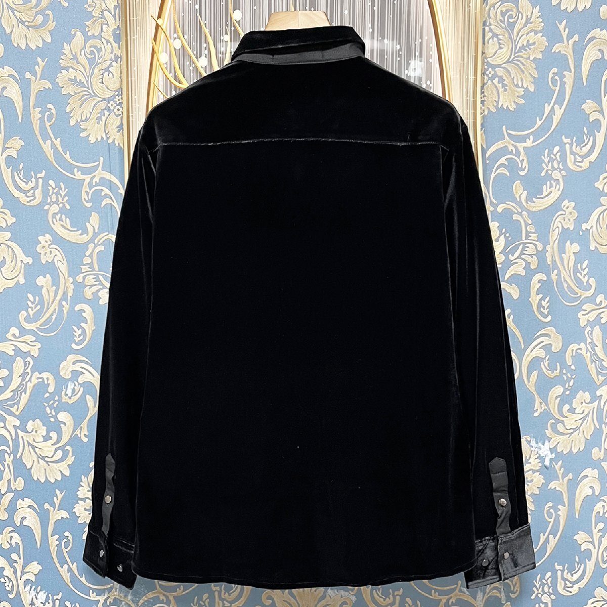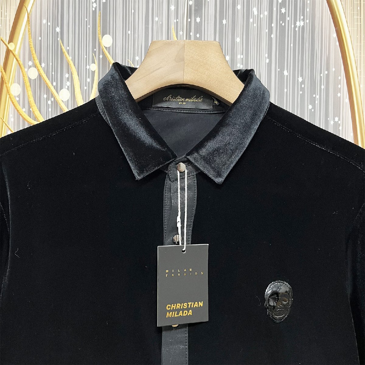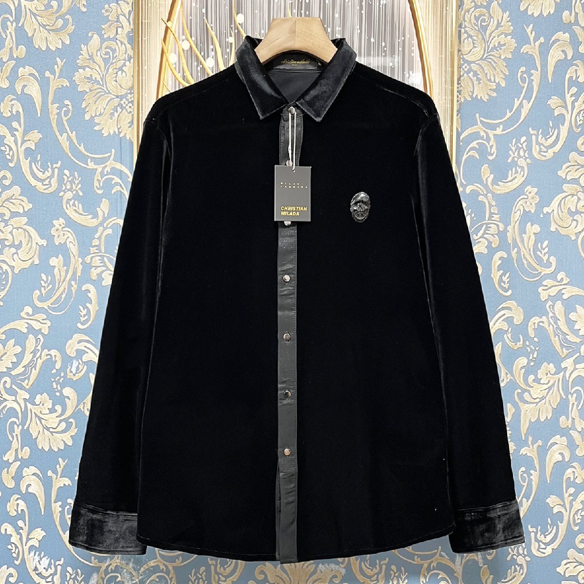 定価5万★christian milada・ミラノ発・長袖シャツ★上級 ベルベット 柔らか 光沢 シンプル スカル 折り襟 開襟シャツ カジュアル 通学 通勤 洗練 春秋 M/46サイズ