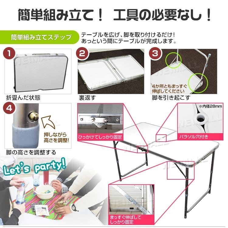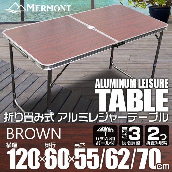 | アルミ製 折りたたみ式 アルミレジャーテーブル 横幅120×奥行60 2つ折り収納 高さ3段階調整 55/62/70cm カラー一覧 |