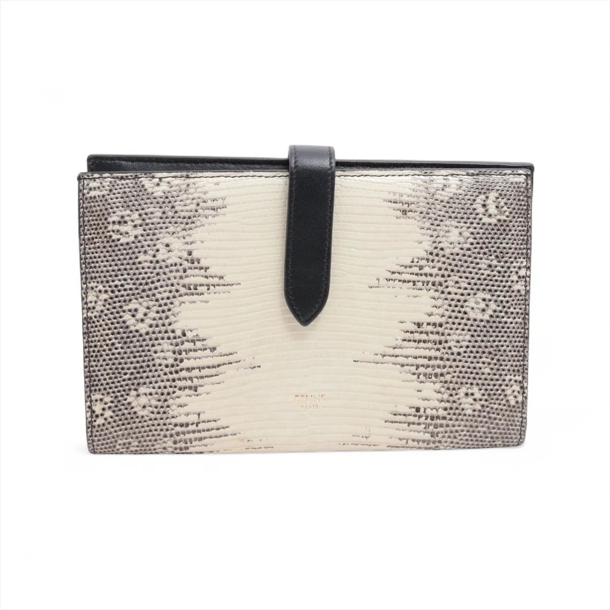 1円■極美品■セリーヌ■ラージ ストラップ ウォレット リザード レザー 長財布 ロング 二つ折り レディース EEE CV50-2