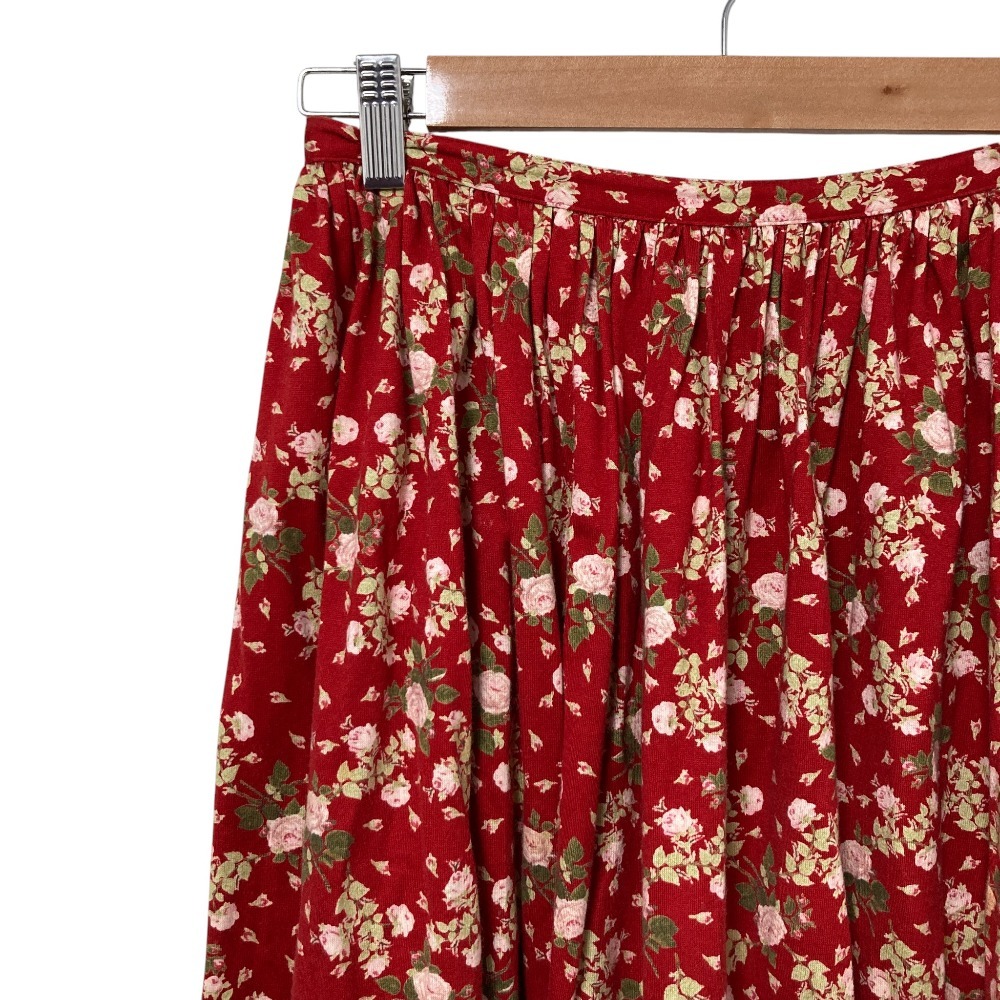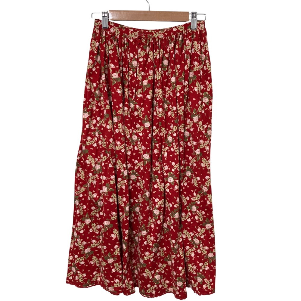 PINK HOUSE ピンクハウス フラワープリント ギャザー ロングフレアスカート レッド