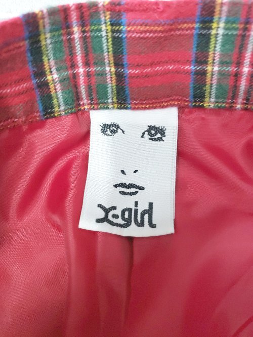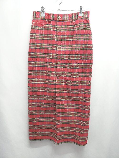 ◇ ⊇ X-girl エックスガール チェック ロング丈 タイト スカート サイズ1 レッド系 マルチ レディース E