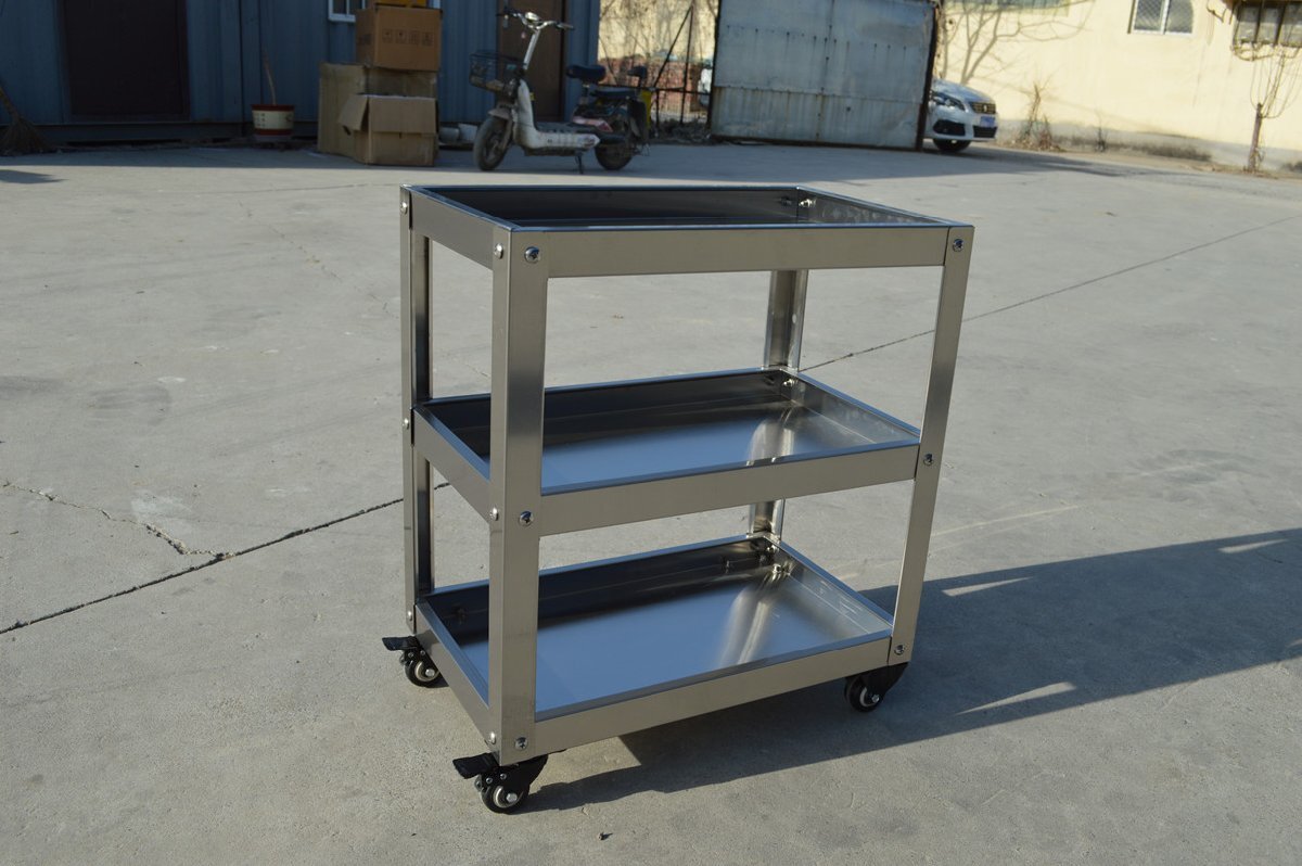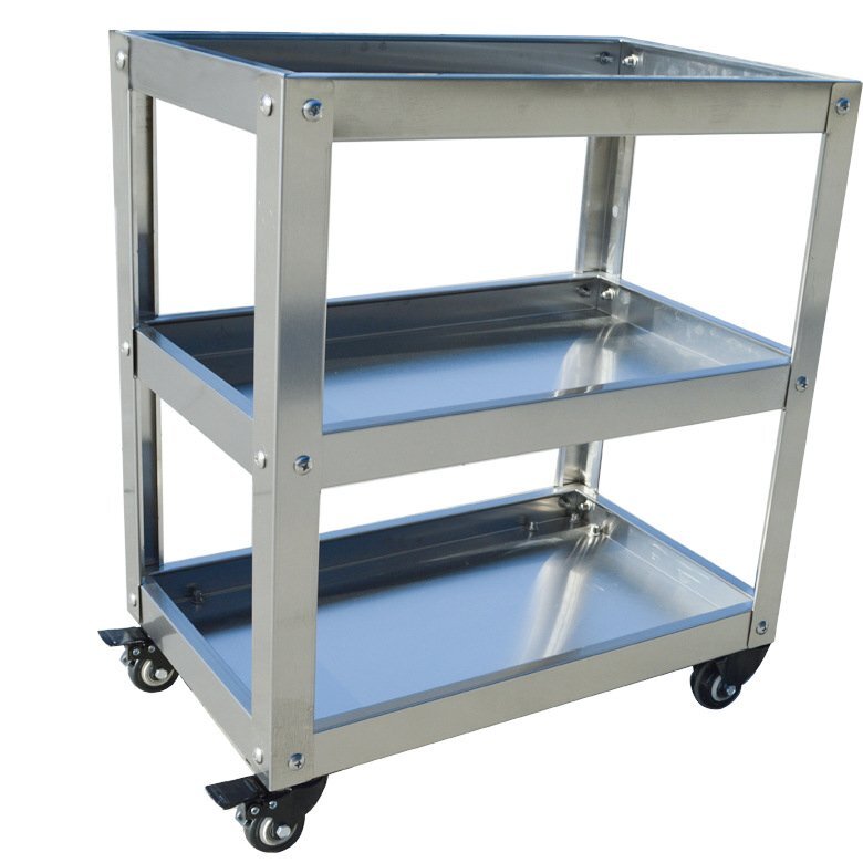 ステンレス製工具箱小型カート多機能ラック3段手押し修理収納棚移動工具車 600*360*700cm