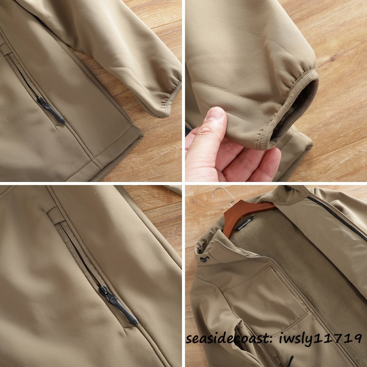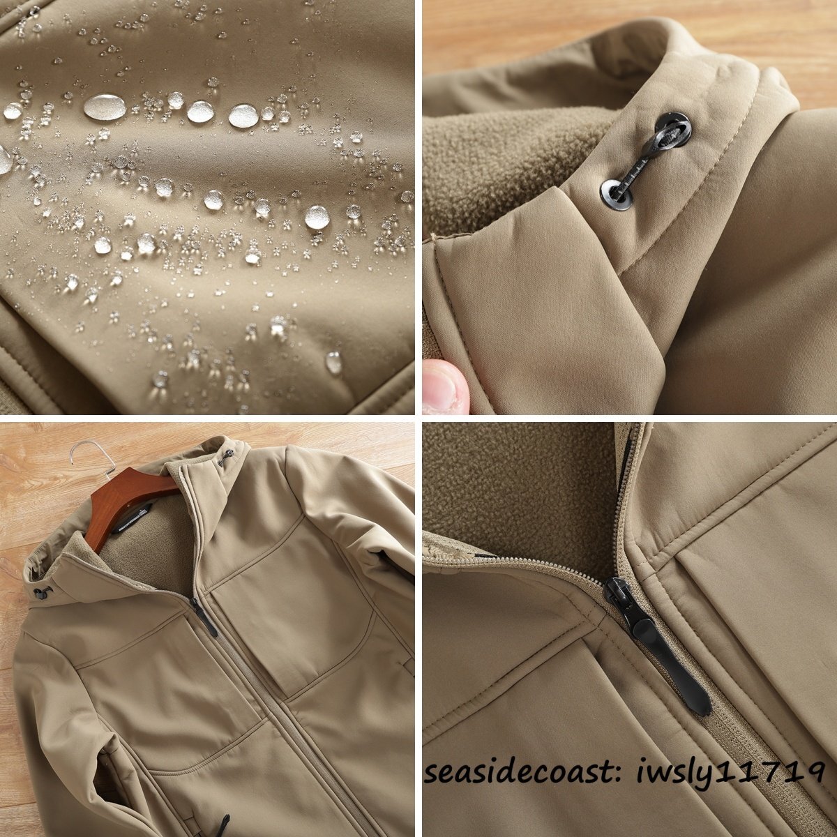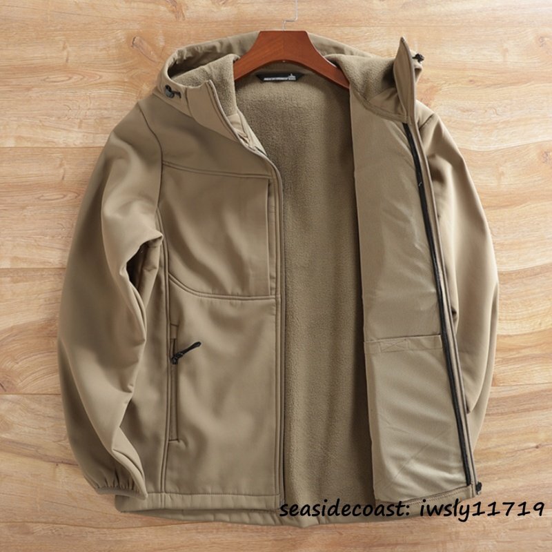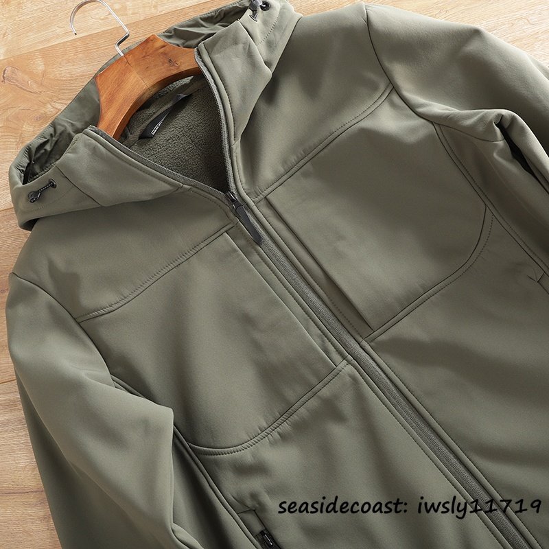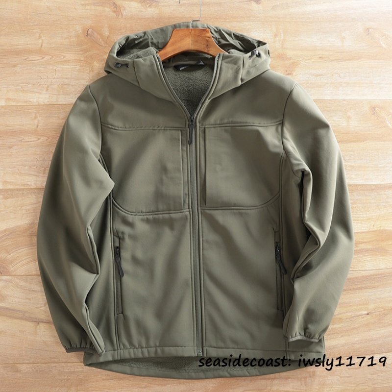 高機能◆メンズ ソフトシェル ジャケット フード付き フリースジャケット 裏起毛 保温 防風防寒 マウンテンパーカ アウトドア オリーブ L