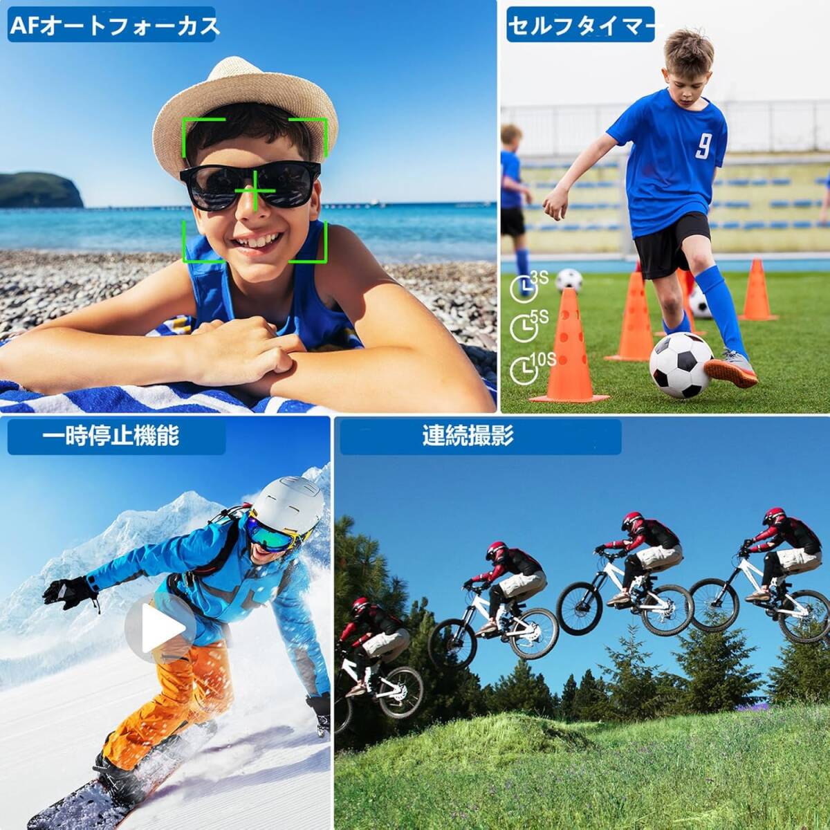 【AFオートフォーカス機能&16 倍デジタル ズーム デジカメ 4K】この4Kデジタルカメラには半オートフォーカス/オートフォーカス/定焦点モードがあり、10 cm以内の物体を鮮明に撮影することができ、操作も非常に簡単です。さらに、16 倍デジタルズーム機能と組み合わせて、+/- ボタンを使用して画像を拡大または縮小することができます。