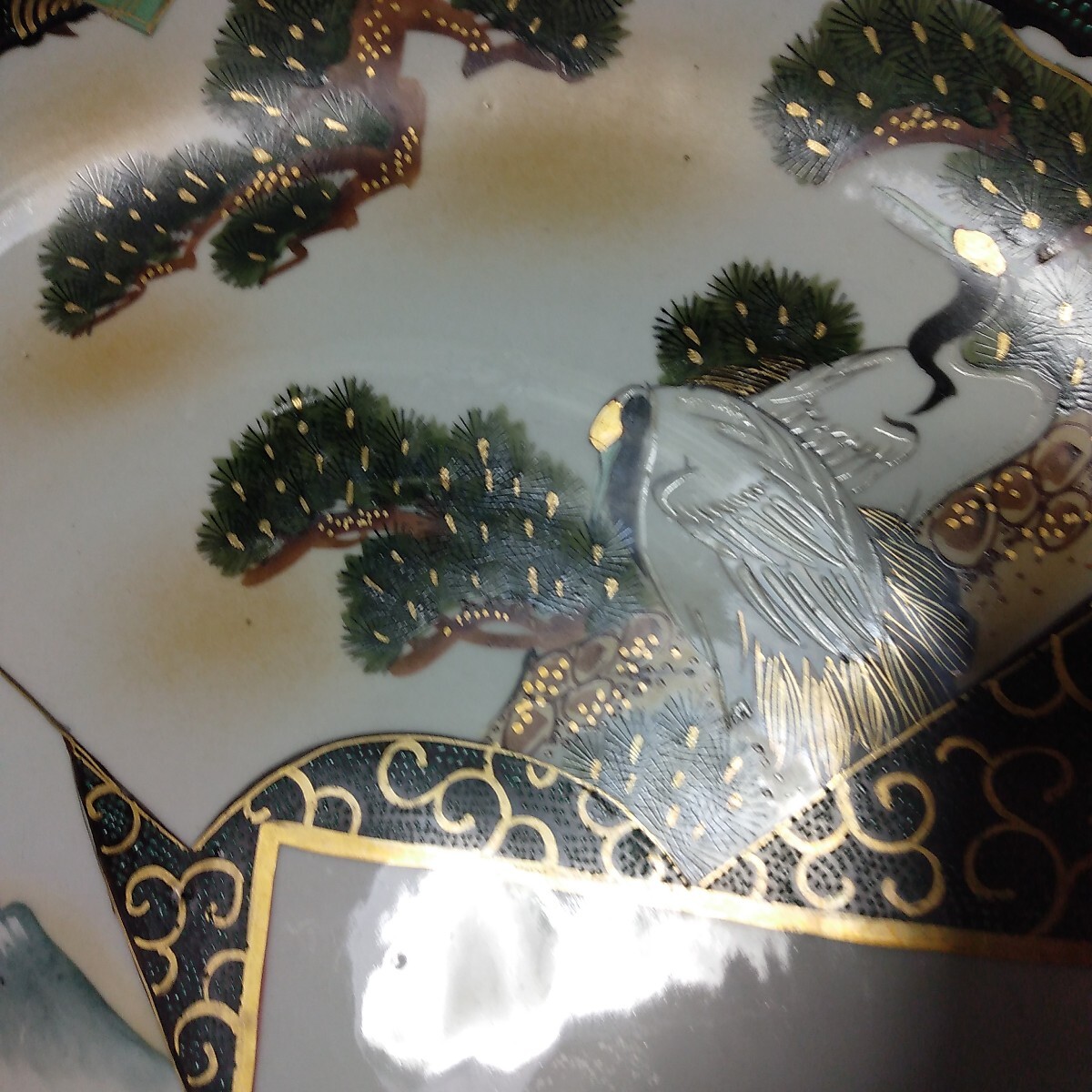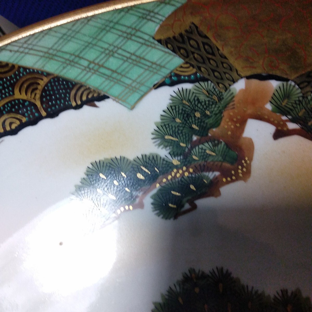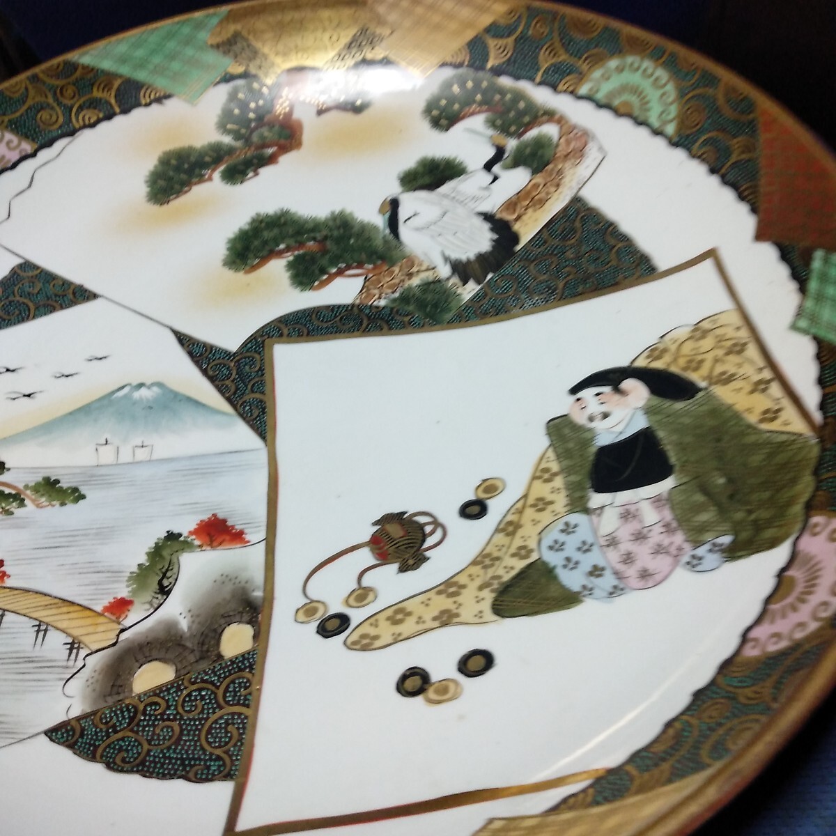九谷焼飾り皿大皿径41、3cm特段の傷みや汚れありません。高さ約7cmです。