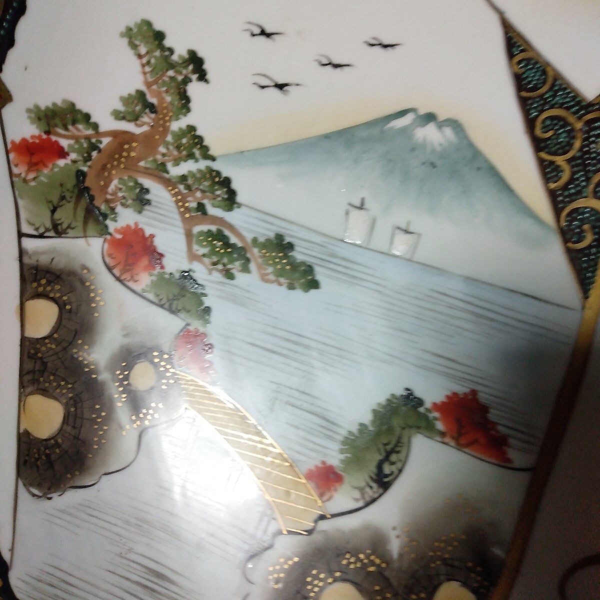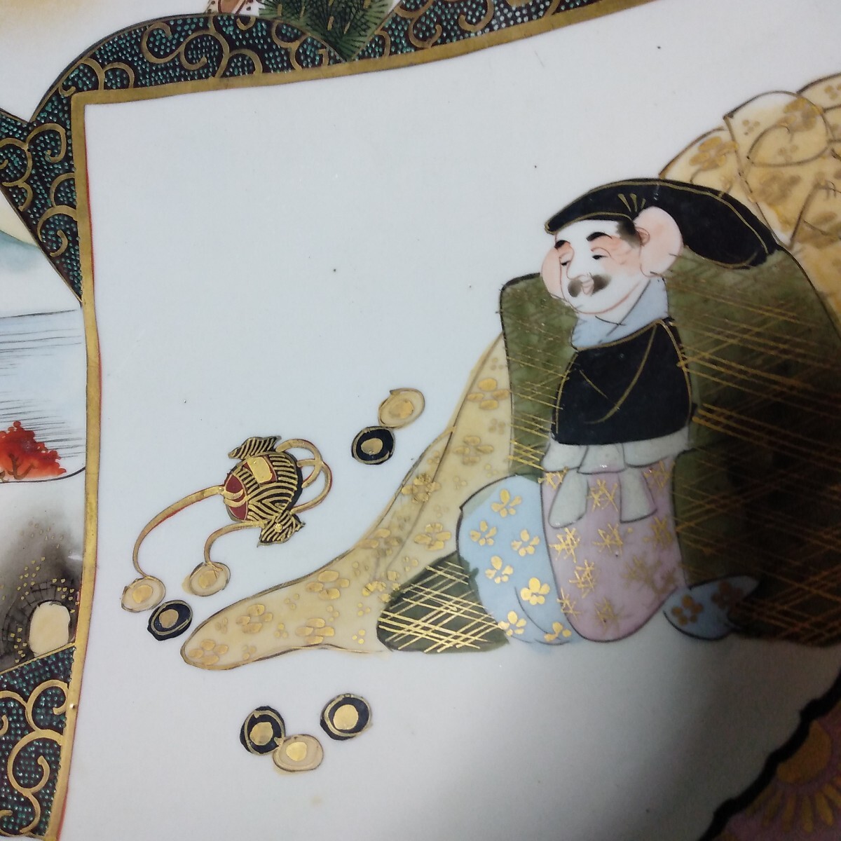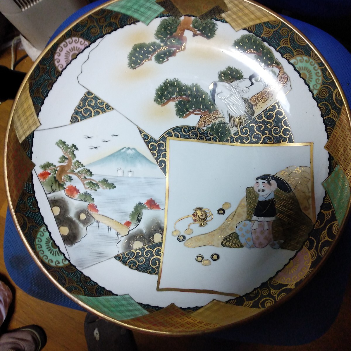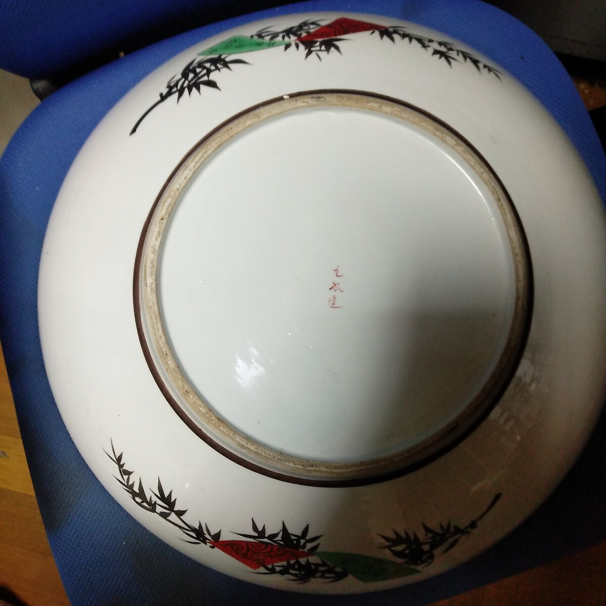 九谷焼飾り皿大皿径41、3cm特段の傷みや汚れありません。高さ約7cmです。