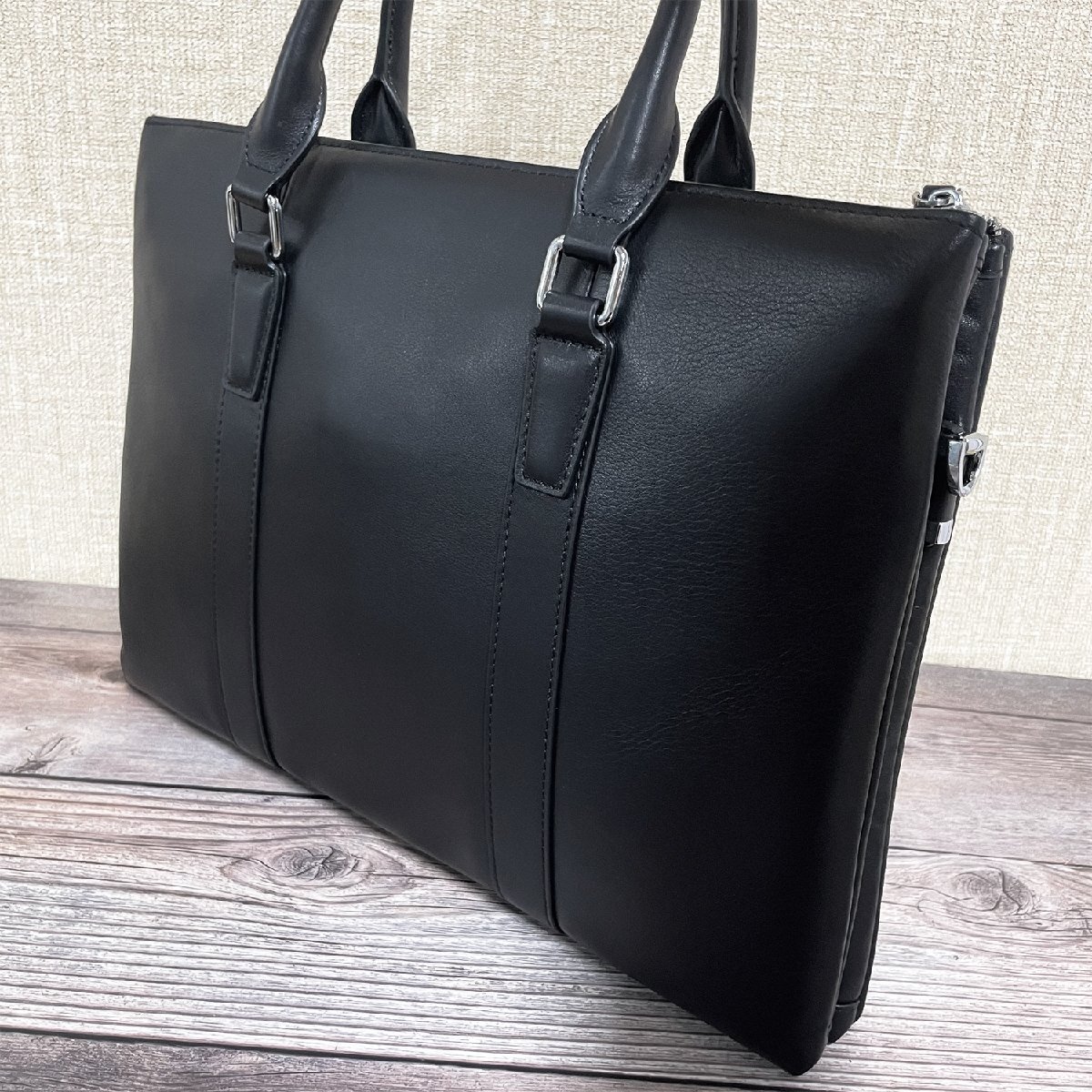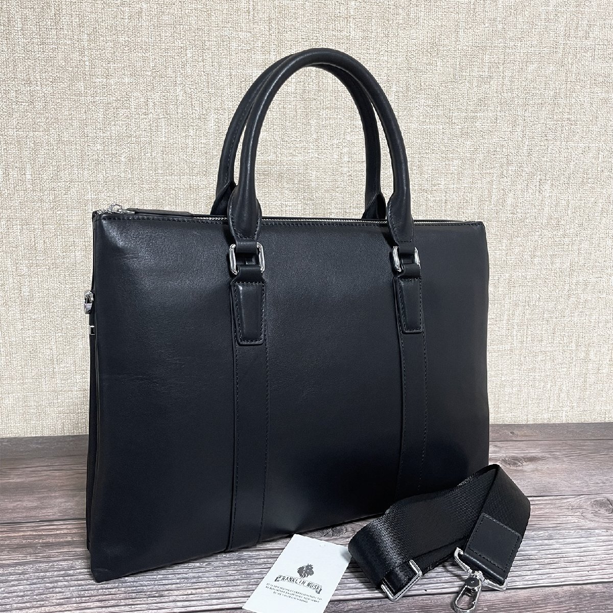 定番 定価11万 FRANKLIN MUSK・アメリカ・ニューヨーク発 ブリーフケース 高品質羊革 本革 撥水 軽量 ベルト付き 2way 通勤 通学