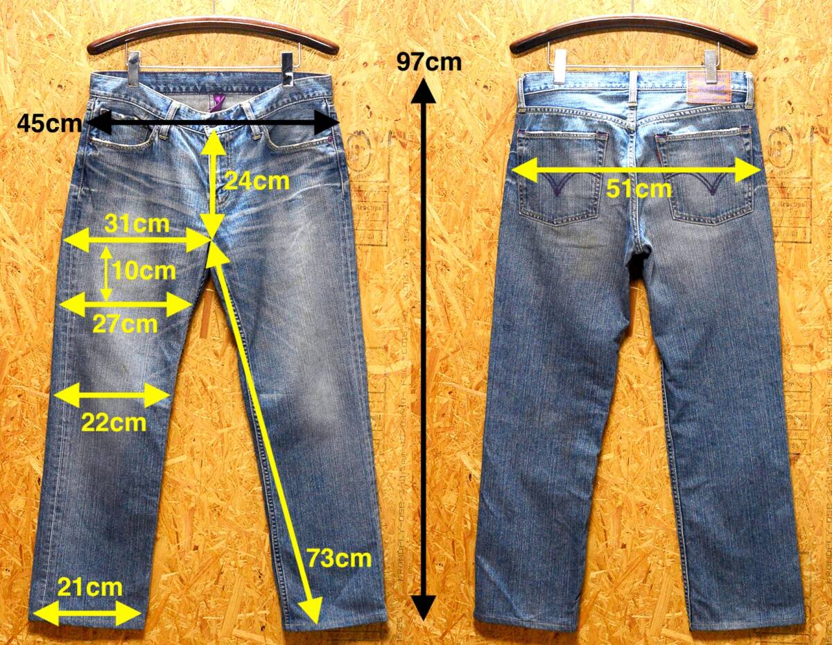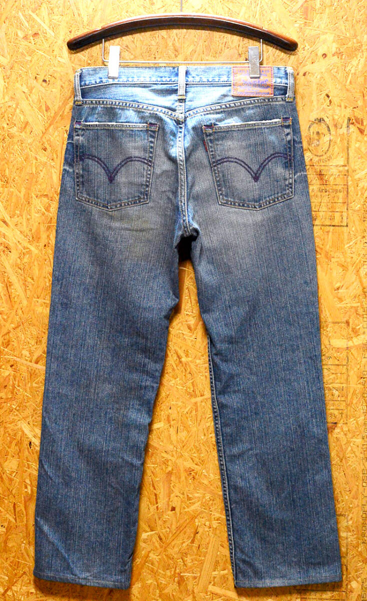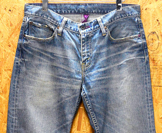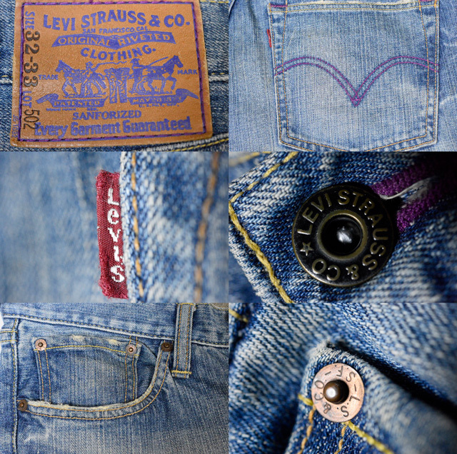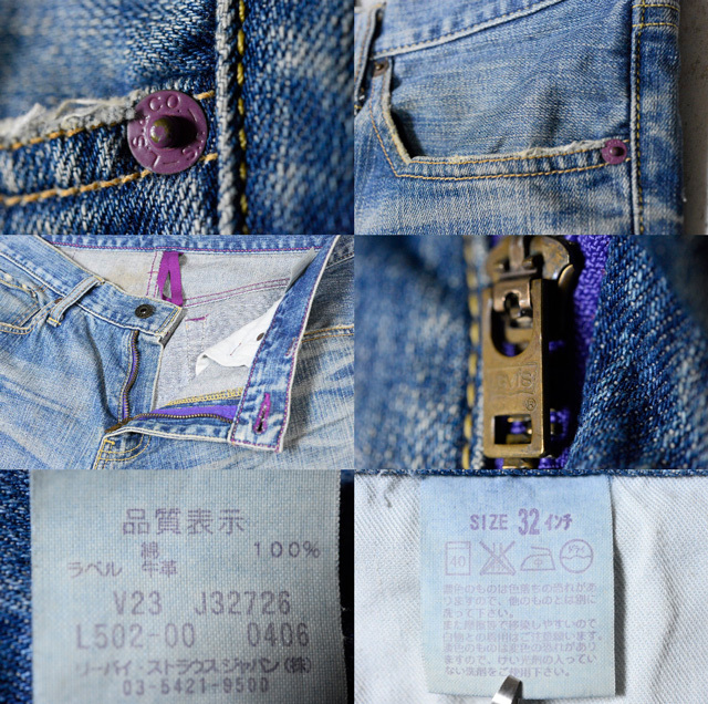 「紫」に着目し、パッチやステッチ、ボタン等に使用することで 遊び心を取り入れました。 まさに伝統と革新が融合された一品です。 特徴パープルのステッチパープルのセルビッチパープルのバータック左前ポケットのアクセントになっている紫のリベット全体に紫を基調とした遊び心のあるデザインになっています。2006年4月製。ジッパー使用の501XXとして50年代に開発された501ZXX(60年代には502XXへ継承)を現代風にアレンジしたジーンズです。リーバイスのベーシックシルエットの1つ。長い間、愛されている1本。元々は50年代に501XXのジッパー仕様として開発された501ZXXを基盤に、1967年に東海岸のスタイリッシュな人たちに向けてつくられたという歴史を持つ502です。雰囲気、風合いのある状態です。