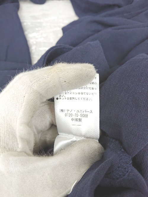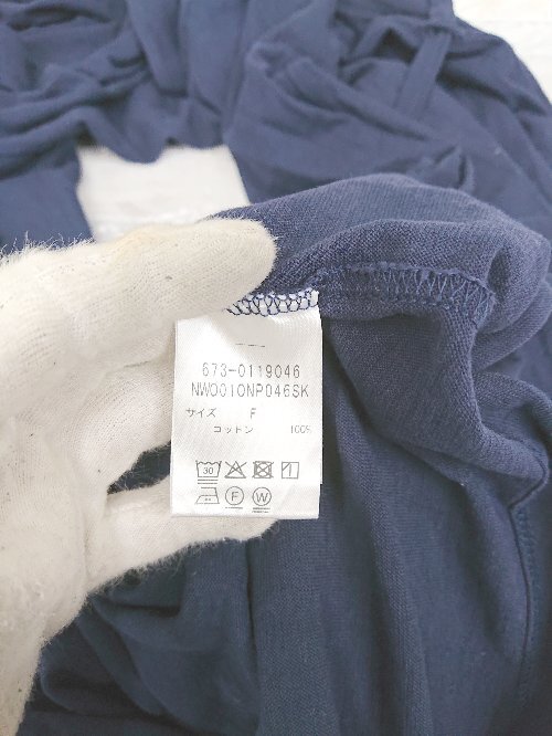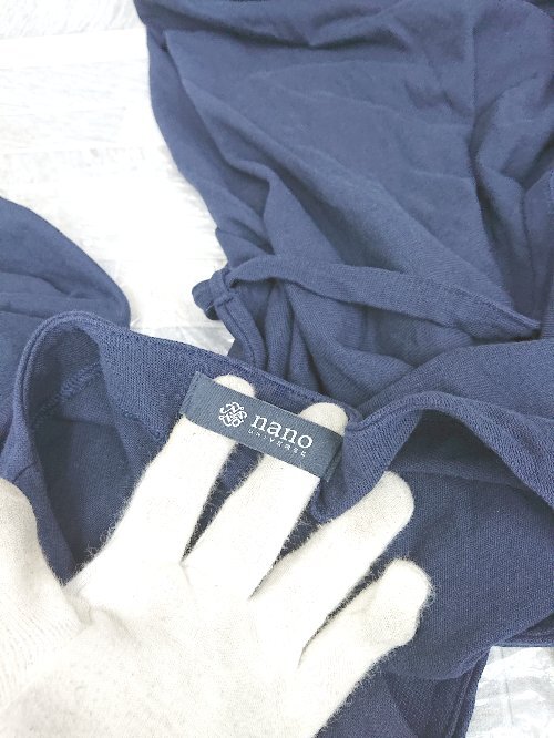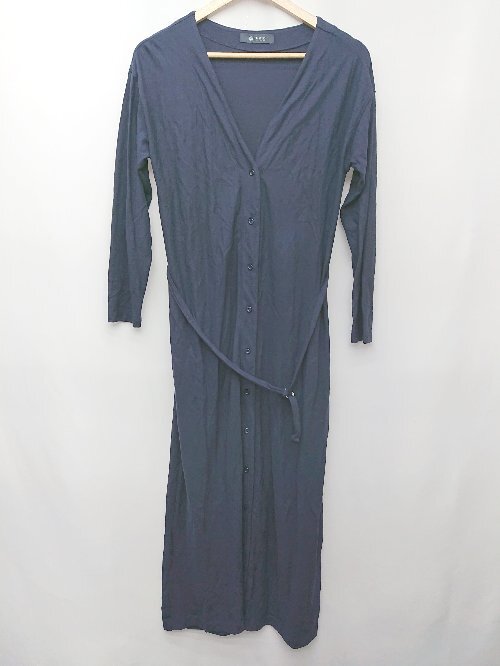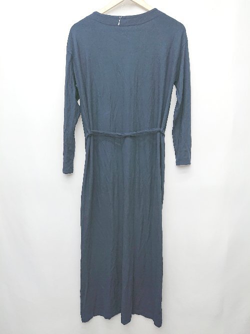 ◇ ⊂ ◎ nano universe ナノユニバース シンプル Vネック 長袖 ロング ワンピース サイズF ネイビー レディース P