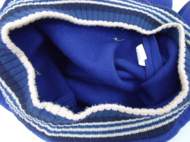 鮮やかな青色にリブのストライプがマッチしたお品です。