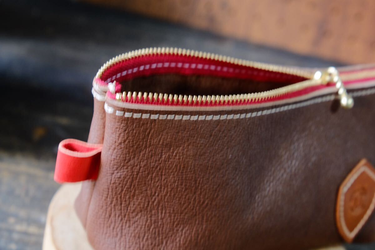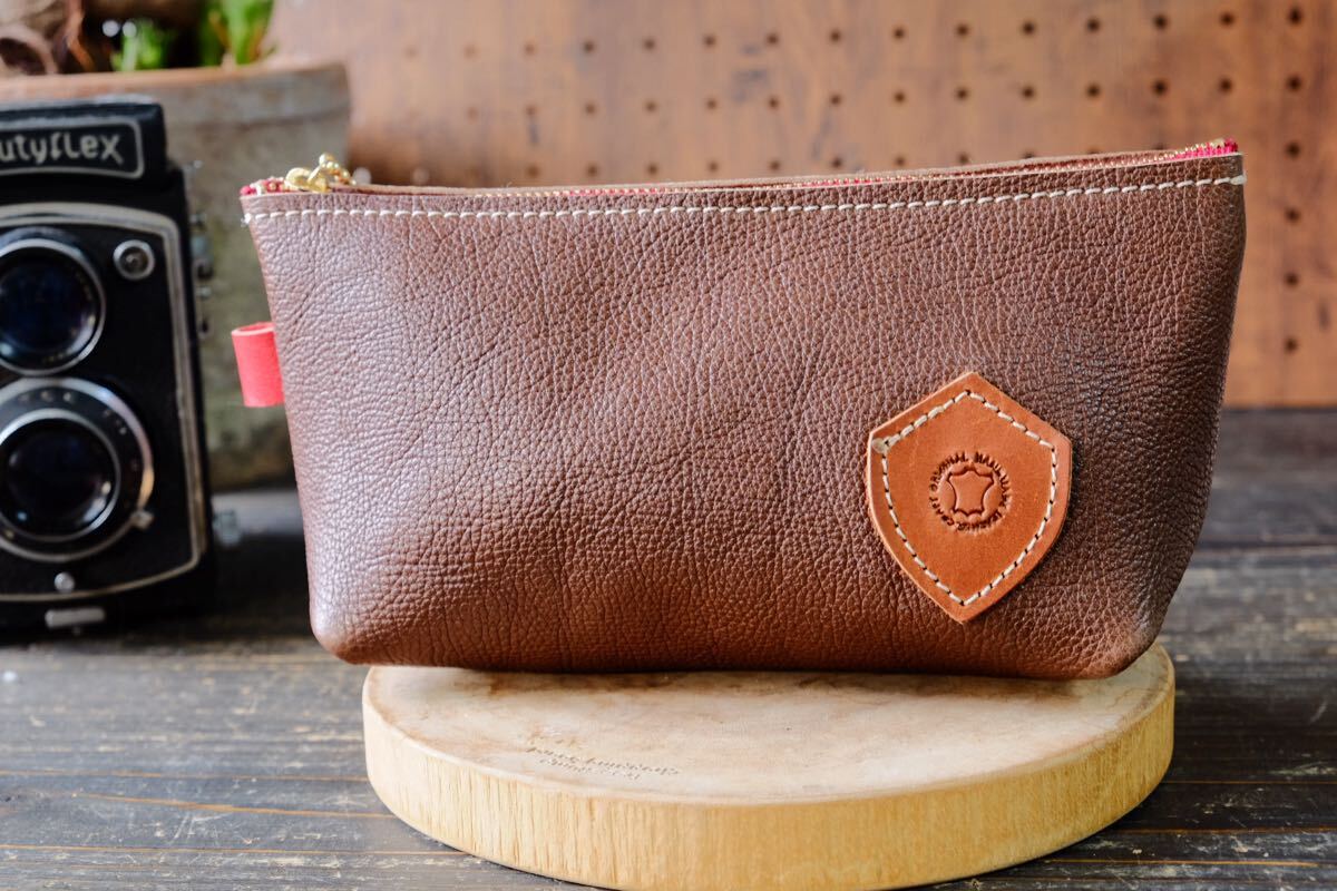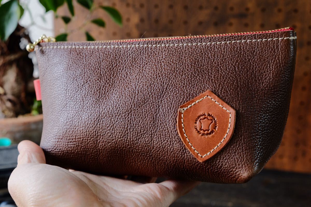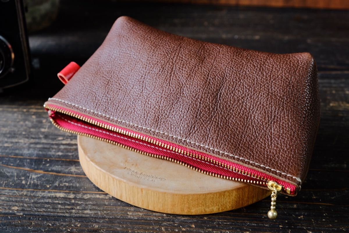 イタリア産★ダコタシュリンクヌメ牛革ブラウンレザーポーチペンケースハイクラス本革