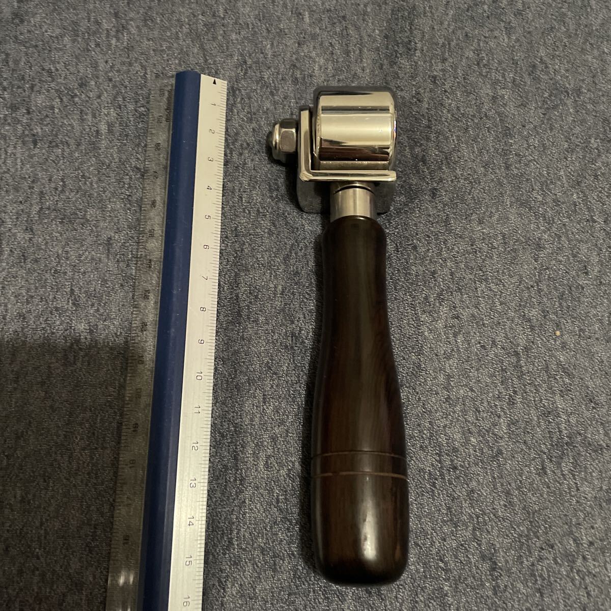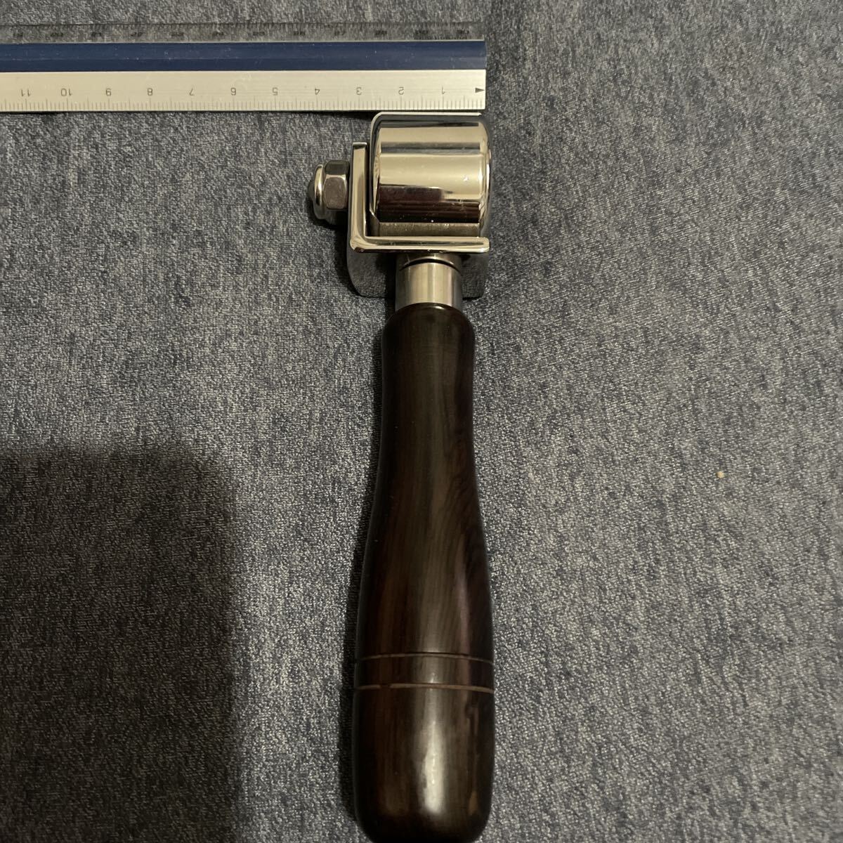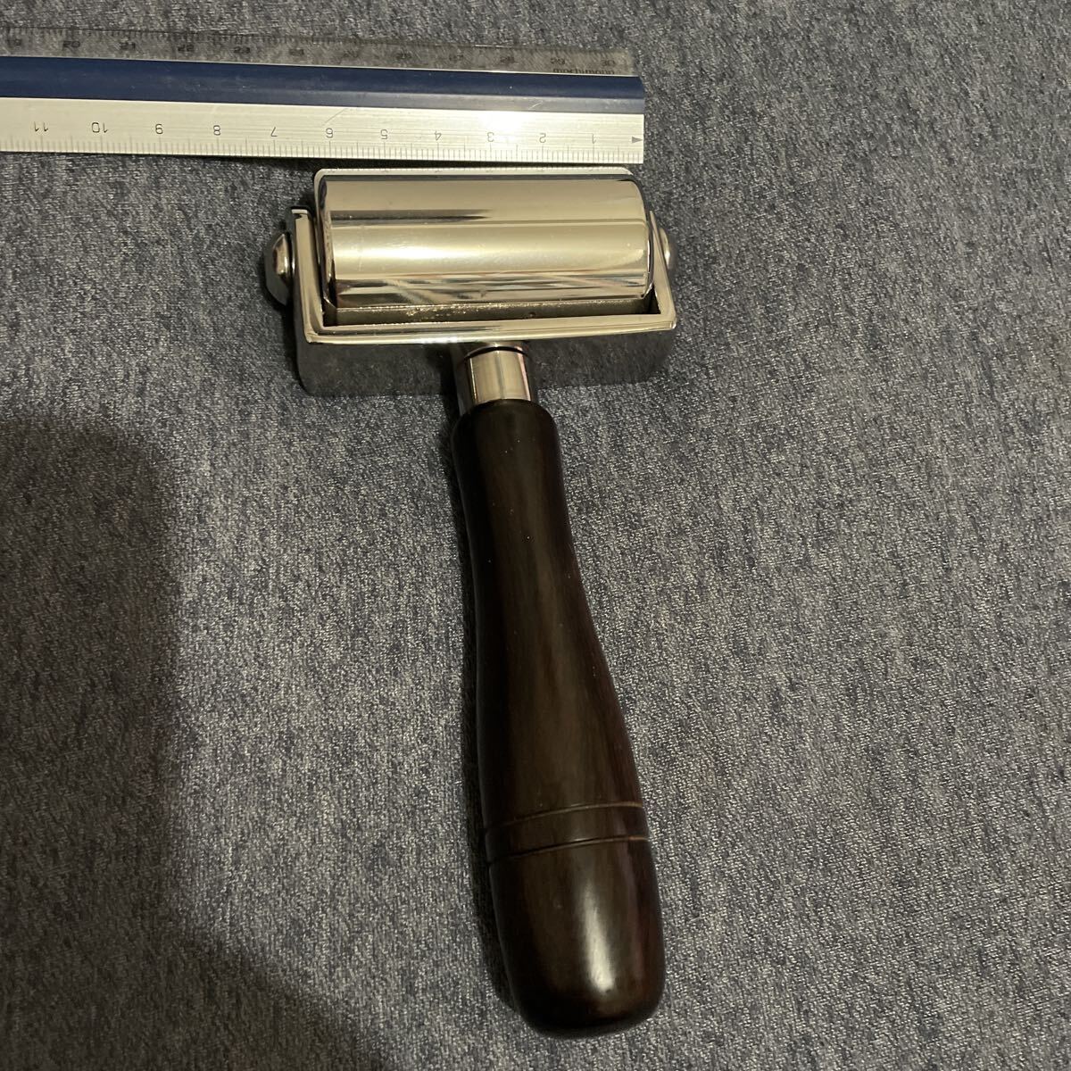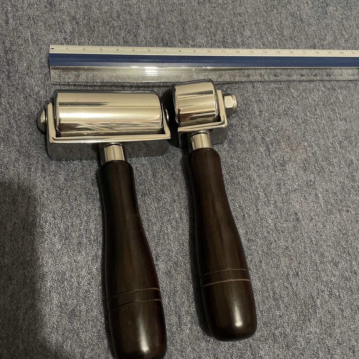 圧着ローラー2点です。ステンレス製、黒檀使用の高級品です。ローラー幅は、およそ2.5cm と5.6cmです。レザークラフトをされている方いかがでしょうか。