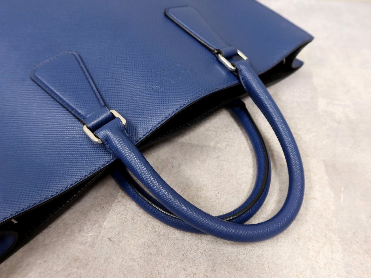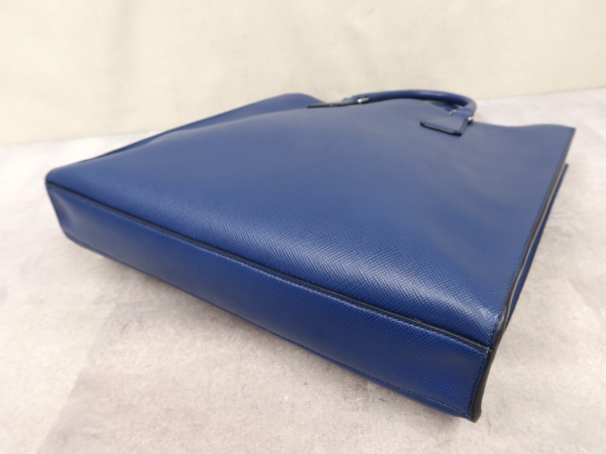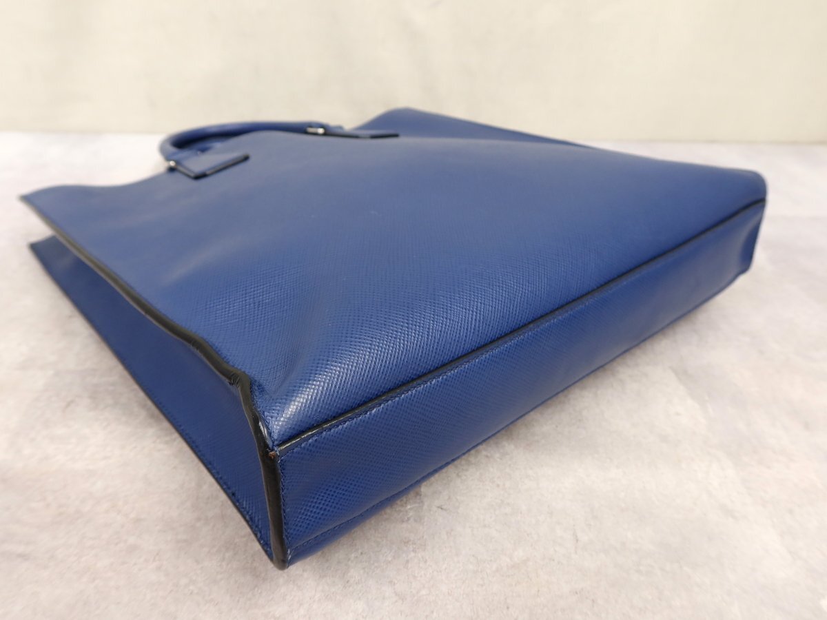 ●超美品●PRADA プラダ●メンズ●ロゴ型押し●サフィアーノ レザー 本革●トート バッグ●ブルー●SV金具●イタリア製●A4 収納●Js62957