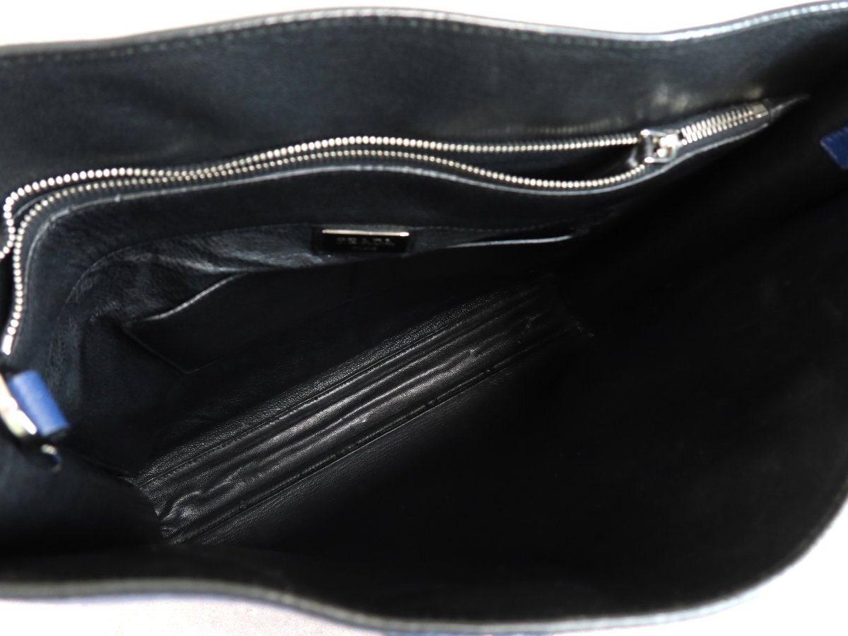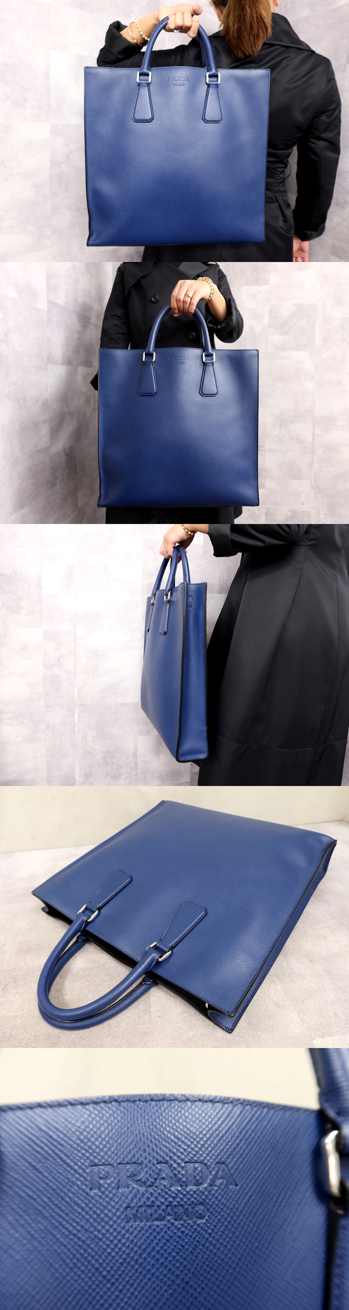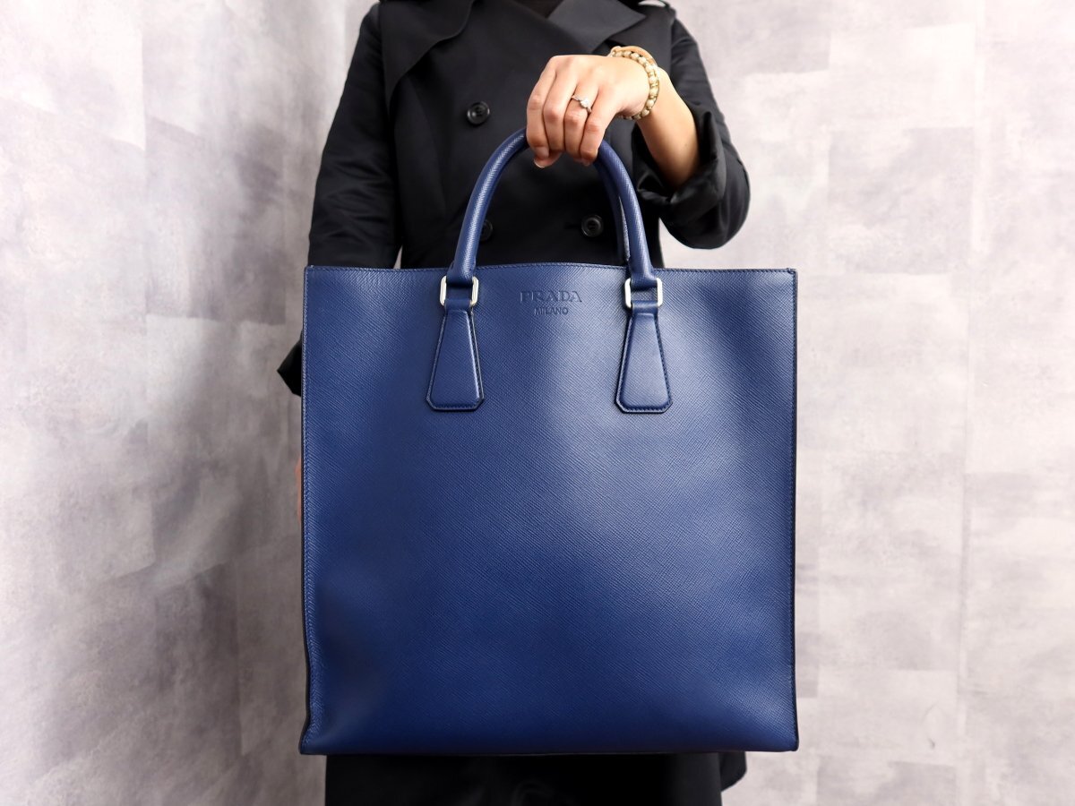 ●超美品●PRADA プラダ●メンズ●ロゴ型押し●サフィアーノ レザー 本革●トート バッグ●ブルー●SV金具●イタリア製●A4 収納●Js62957