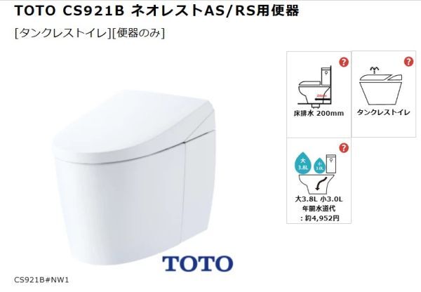 | ☆開封済新品未使用品☆ TOTO ネオレスト床置大便器 AS・RS共通タイプ CS921B - ブランド: TOTO - モデル名: ネオレスト床置大便器 AS・RS共通タイプ CS921B - カラー: ホワイト - 特徴: 便座別途 | |||