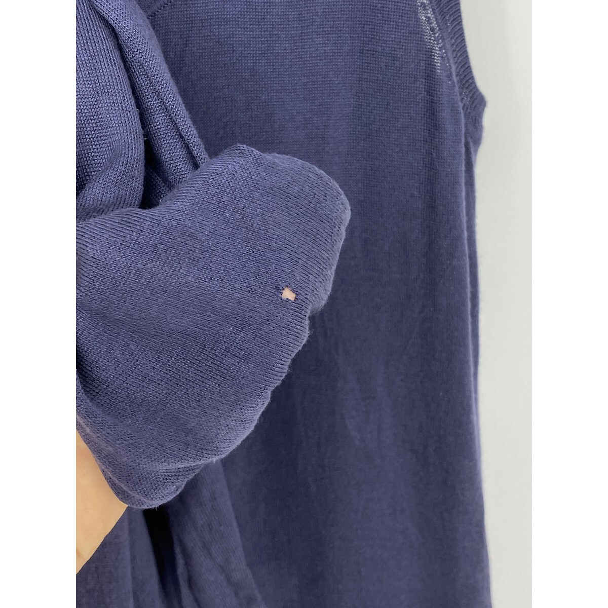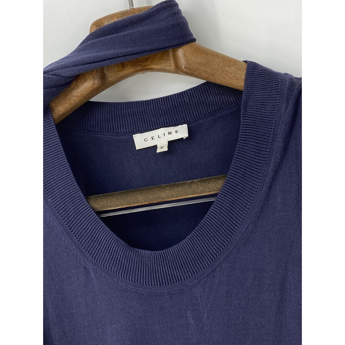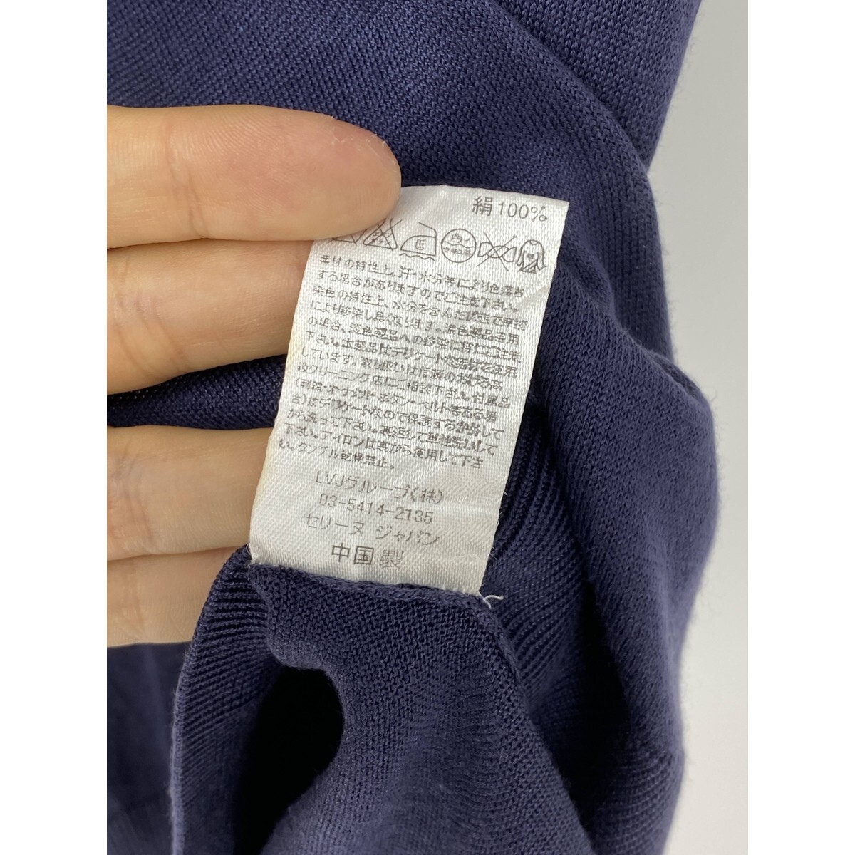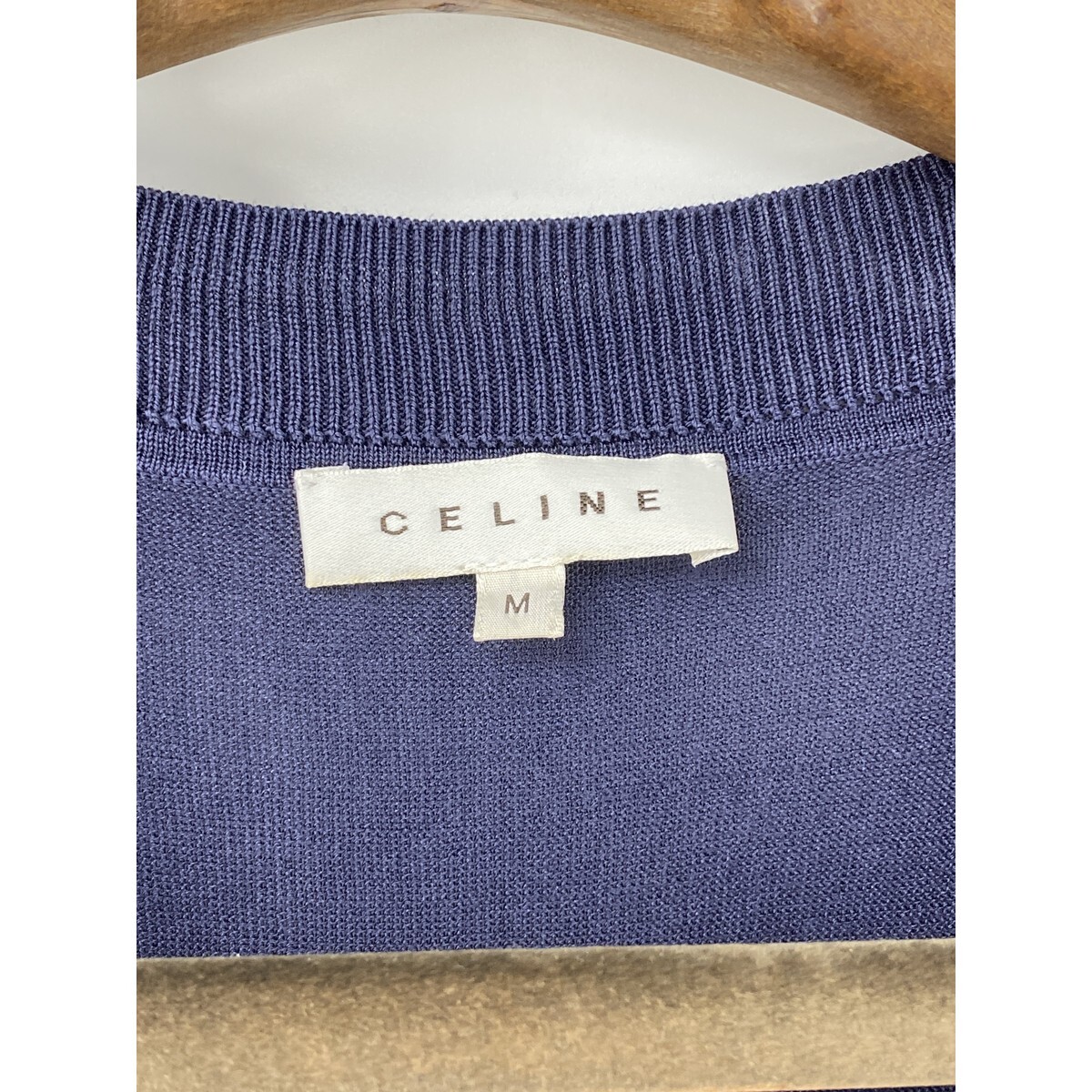 A8158/美品 春夏 CELINE セリーヌ 丸首 シルク100 リボンタイ ストール ノースリーブ ニット リブ セーター ベスト ジレ M 紺/レディース