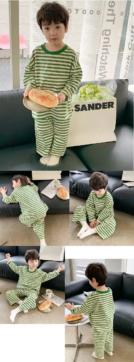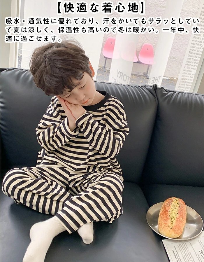キッズ ルームウェア 子供 パジャマ セット ラウンドネック プルオーバー シンプル 無地 子供 長袖 長ズボン ベビー ☆2色/90~150選択/1点