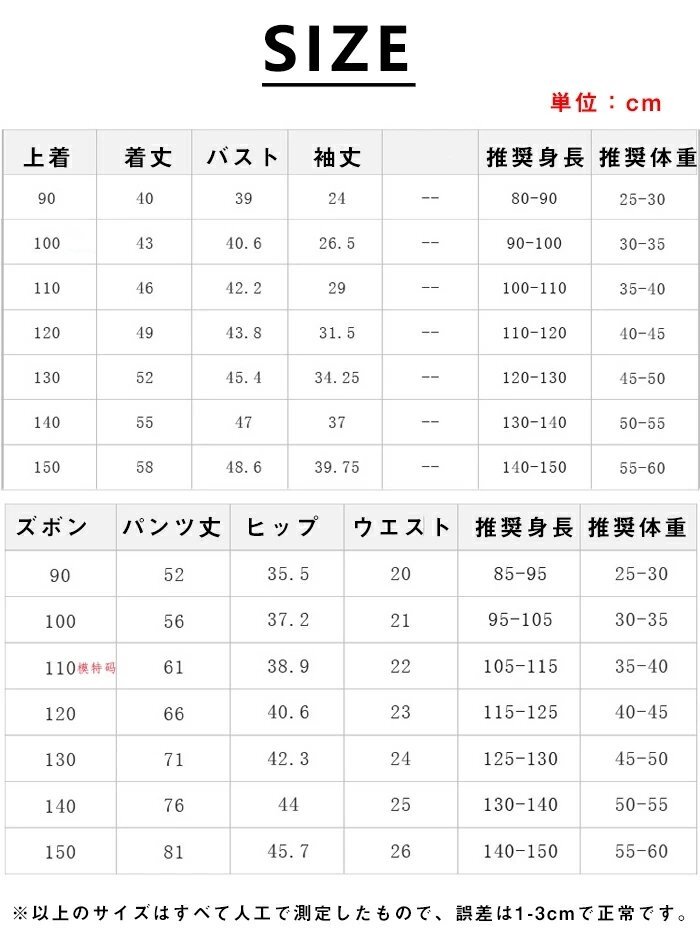 ※以上のサイズはすベて人工で測定したもので、誤差は1-3cmで正常です。