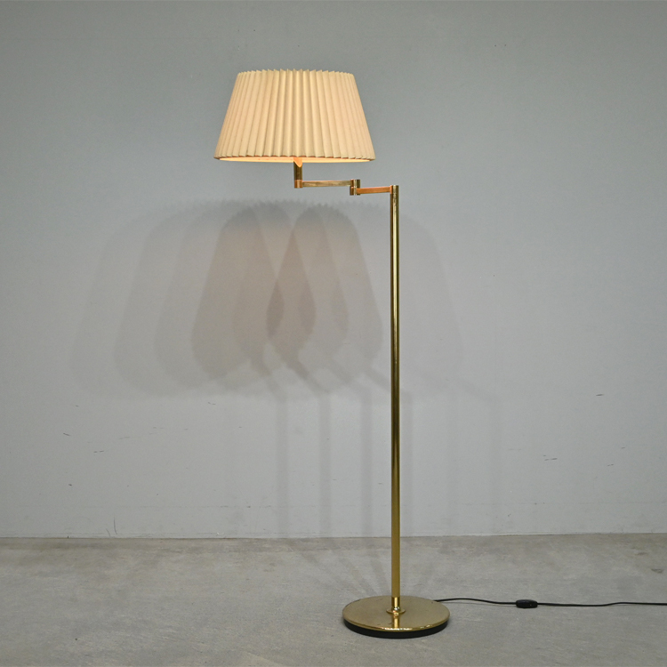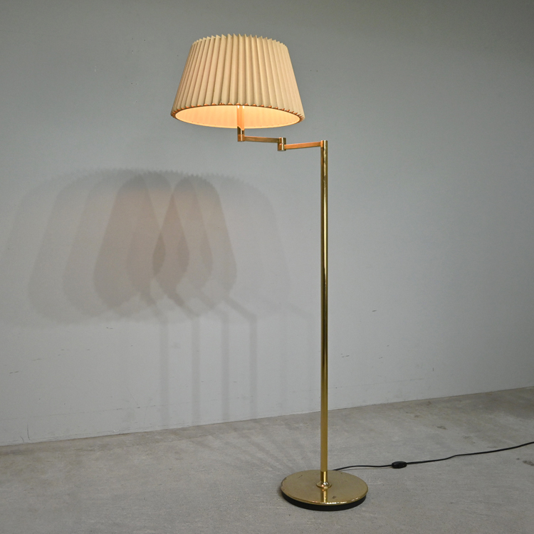 80年代ヴィンテージ ヤマギワ “Neolite” 真鍮色 スイングアーム付き フロアスタンド 2灯/クラシック イタリア ロイズ 池田製作所 IDC