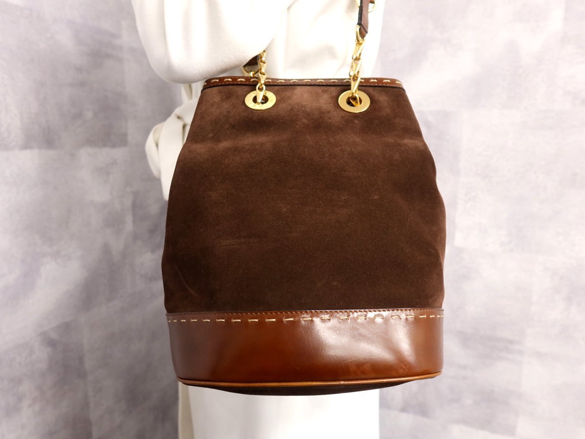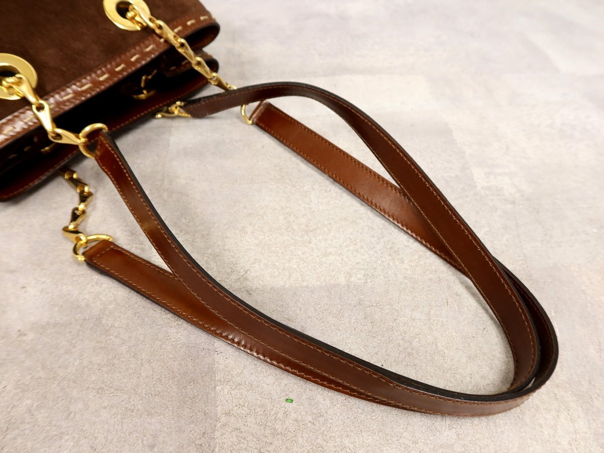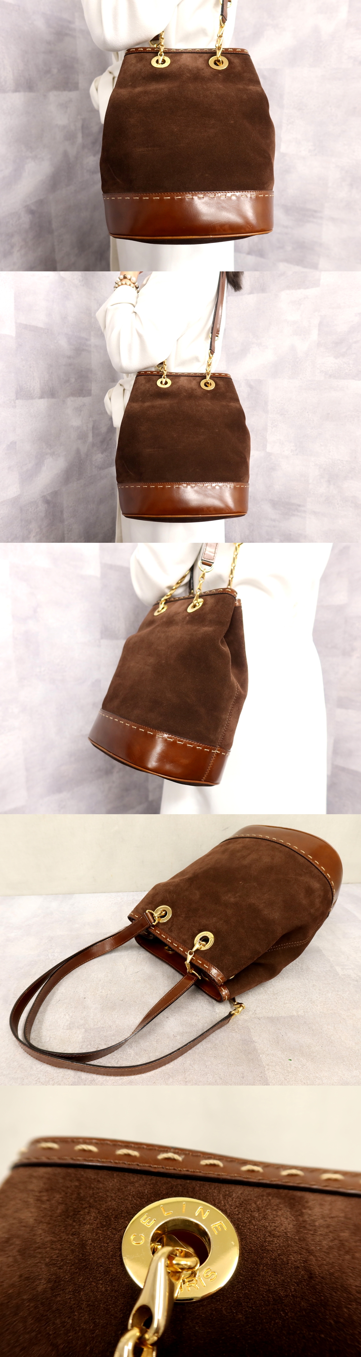 ●超美品●CELINE セリーヌ●スエード カーフ レザー 本革●ショルダー バッグ●ブラウン系●ゴールド金具●肩掛け●B5 書類 収納●Js63048