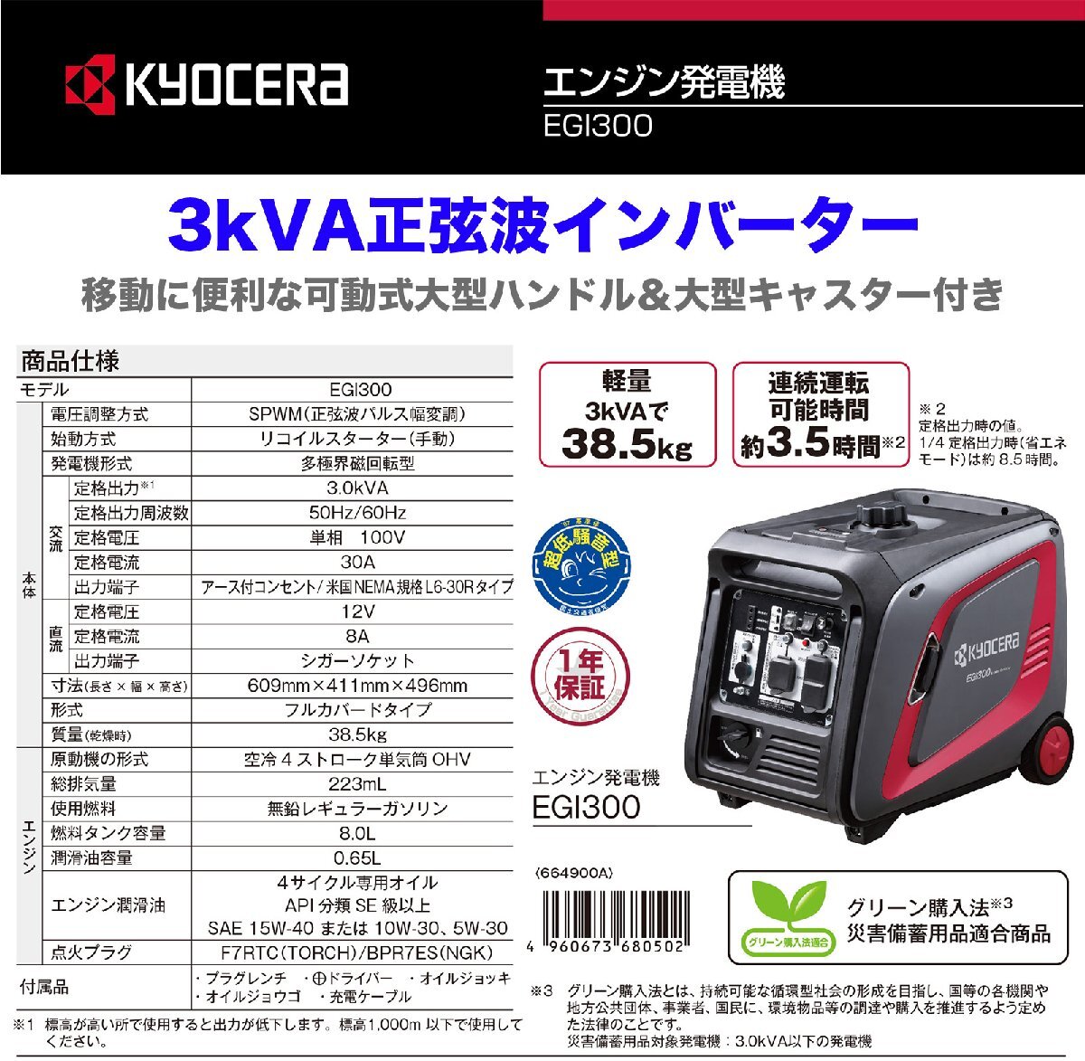 〈京セラ〉エンジン発電機 EGI300【オススメ】 JAN:4960673680502