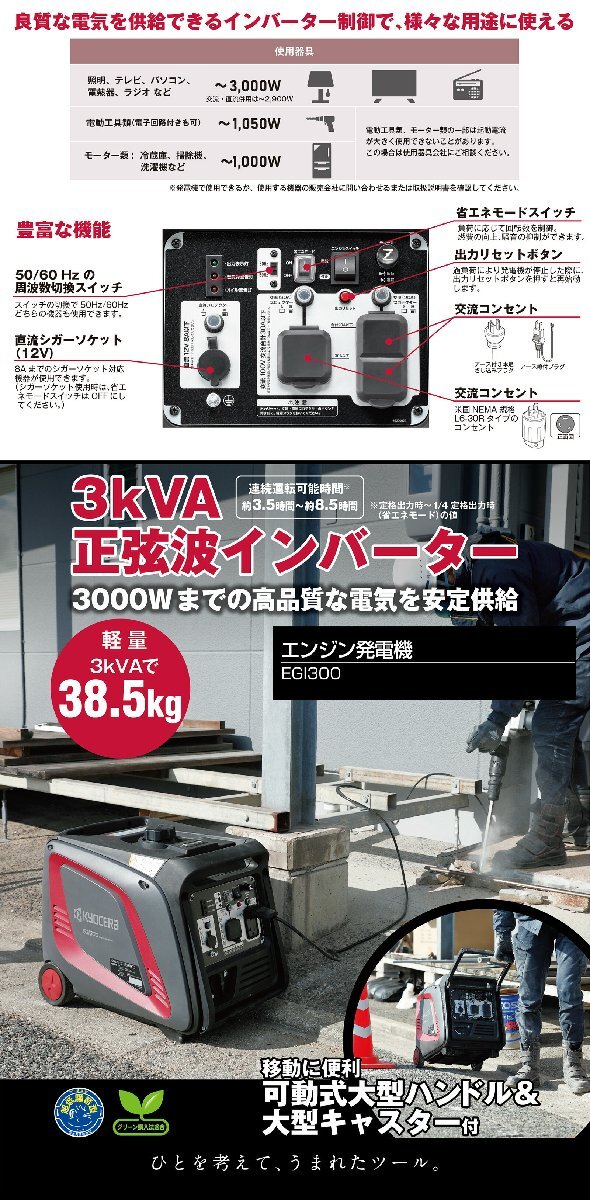 〈京セラ〉エンジン発電機 EGI300【オススメ】