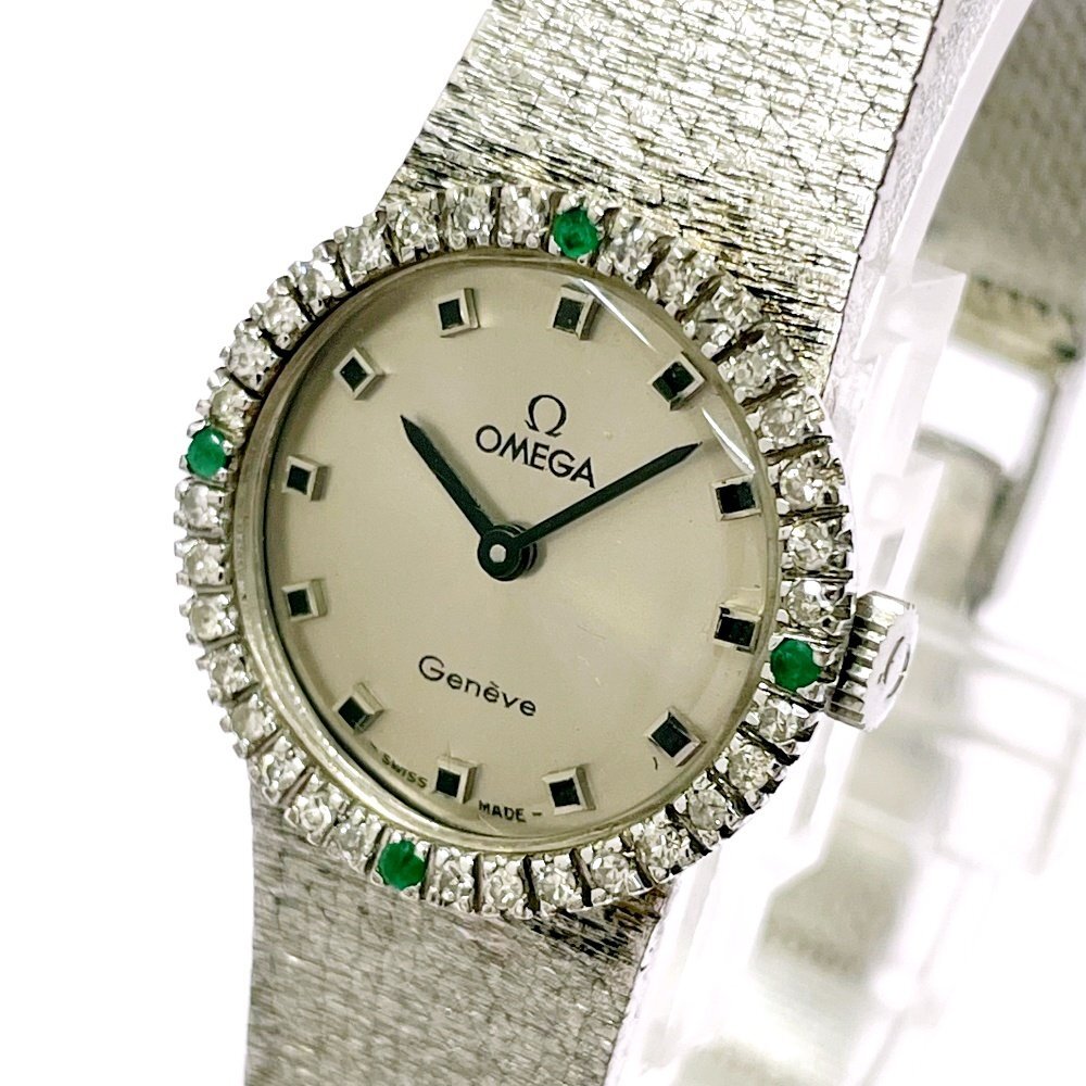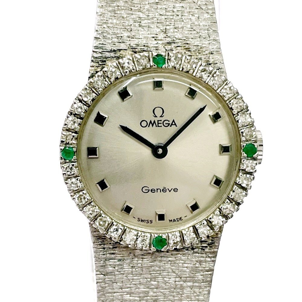 【1円スタート】【訳あり品】OMEGA オメガ ジュネーブ ストーンベゼル シルバー文字盤 手巻き レディース腕時計 522645