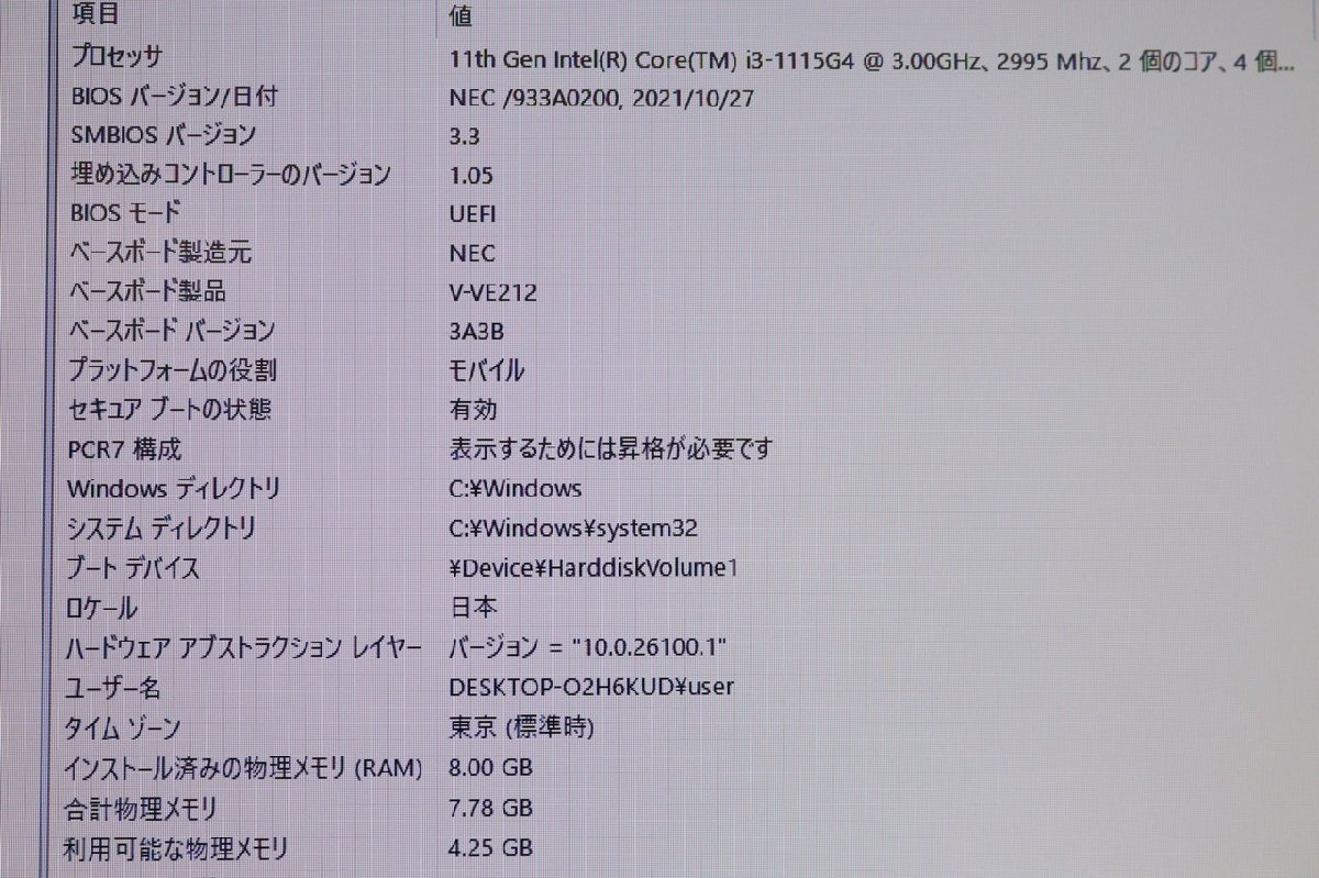N 1【★i3第11世代★】NEC / PC-VRL41FB8J31B / CPU:core i3-1115G4@3.00GHz / メモリ:8GB / HDD:500GB / Windows11 Pro