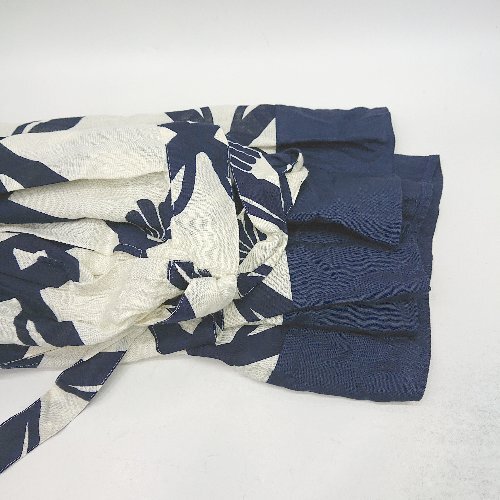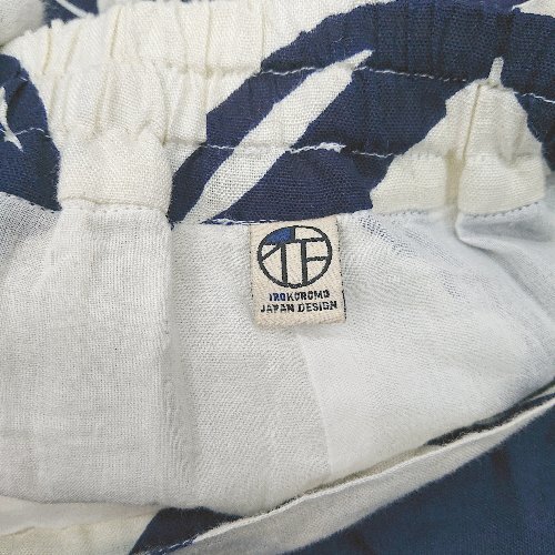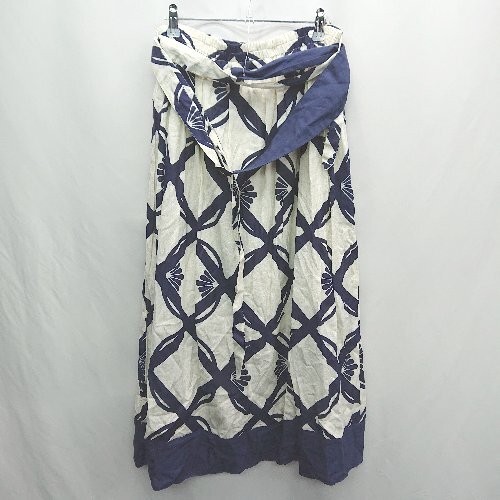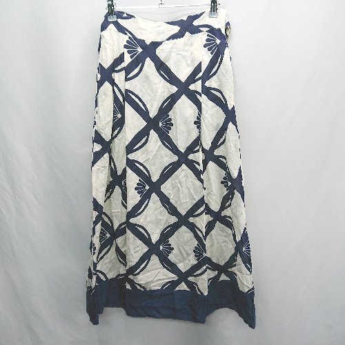 ◇ Θ IROKOROMO ウエストベルト付き 総柄 ロング丈 フレア スカート サイズ表記なし ホワイト ネイビー レディース E
