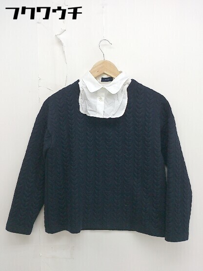◇ ◎ SHIPS シップス 付け衿付 長袖 ブラウス カットソー サイズ36 ネイビー系 ホワイト レディース