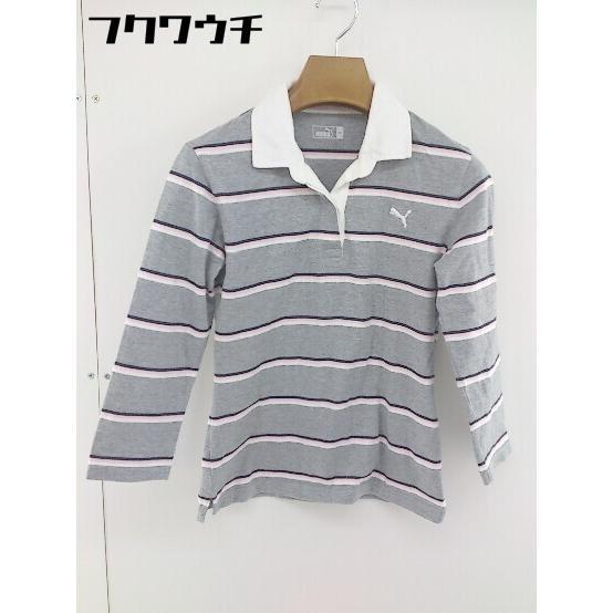 ◇ PUMA プーマ ボーダー 七分袖 ポロシャツ サイズM グレー マルチ レディース
