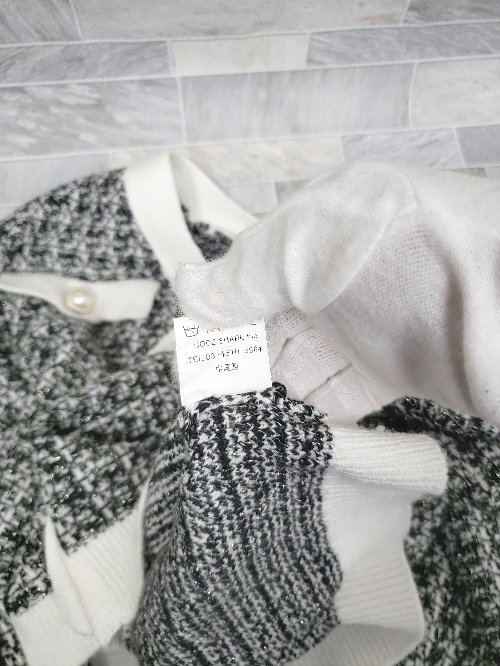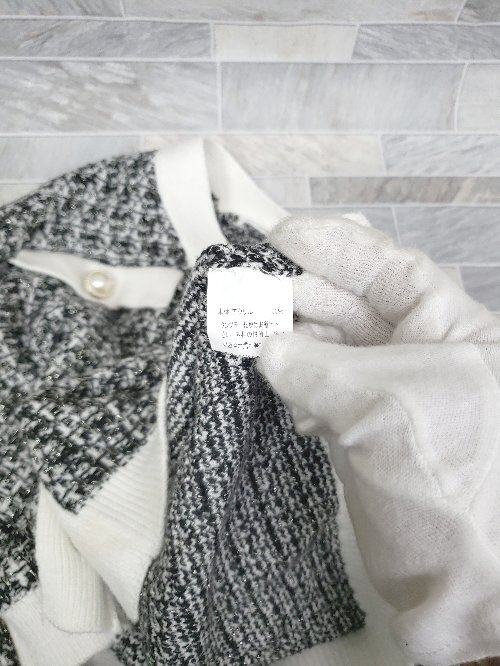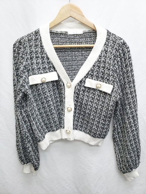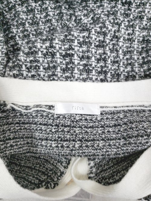 ◇ fifth フィフス パールボタン ラメ 長袖 ニット カーディガン ブラック ホワイト レディース P