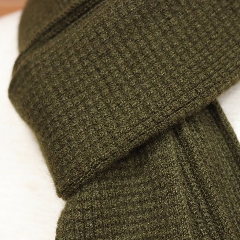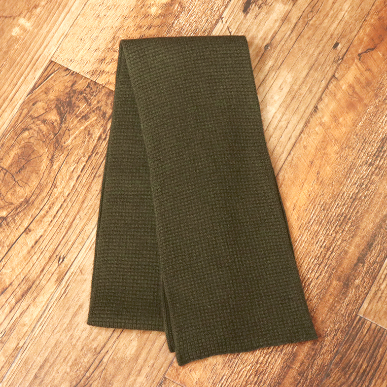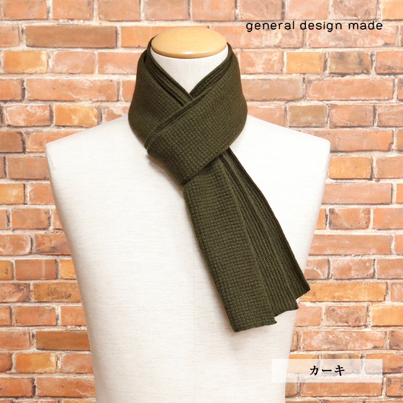 1円/general design made/カシミヤ100% ニット マフラー 日本製 ワッフル リブ ジェネラルデザインメイド 新品/カーキ/jh360/