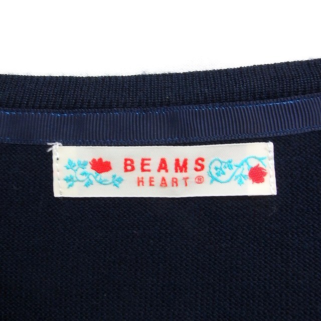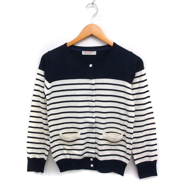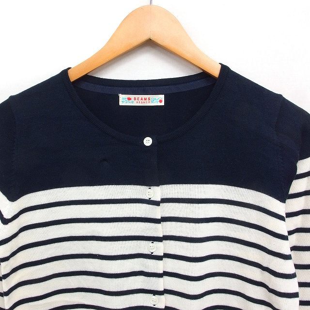 ビームスハート BEAMS HEART ニット カーディガン ボーダー 丸首 ウール混 ネイビー 紺 /FT29 レディース