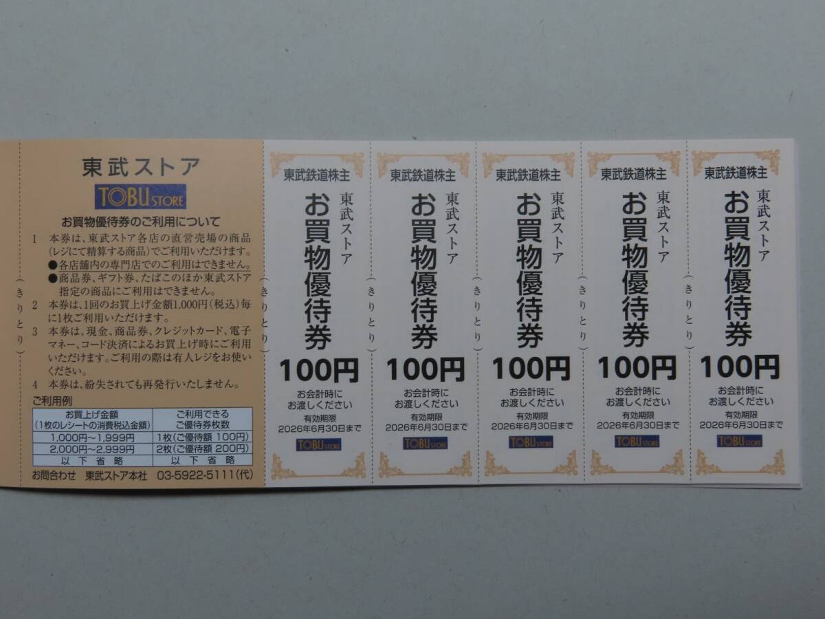 東武ストア お買物優待券100円券10枚 有効期限 2026年6月30日