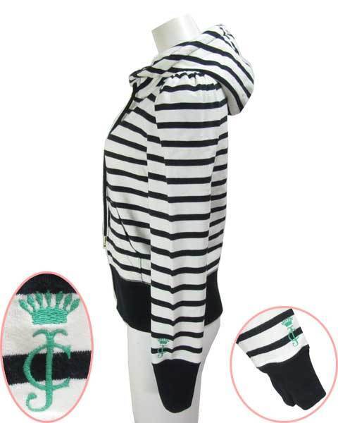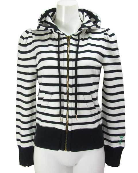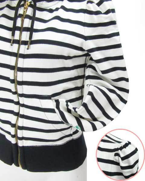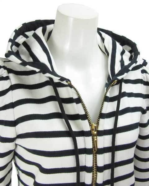 | ジューシークチュール 白 黒 ボーダー コットン パーカー S |