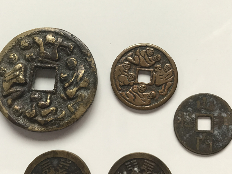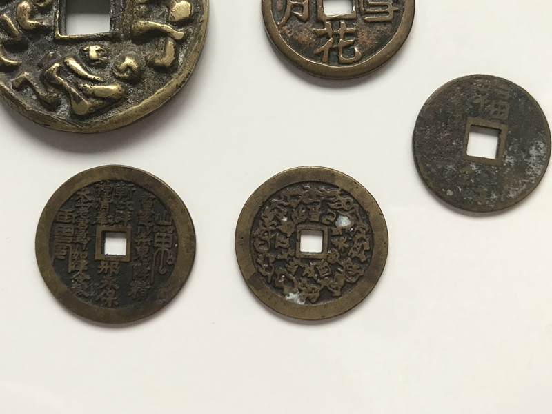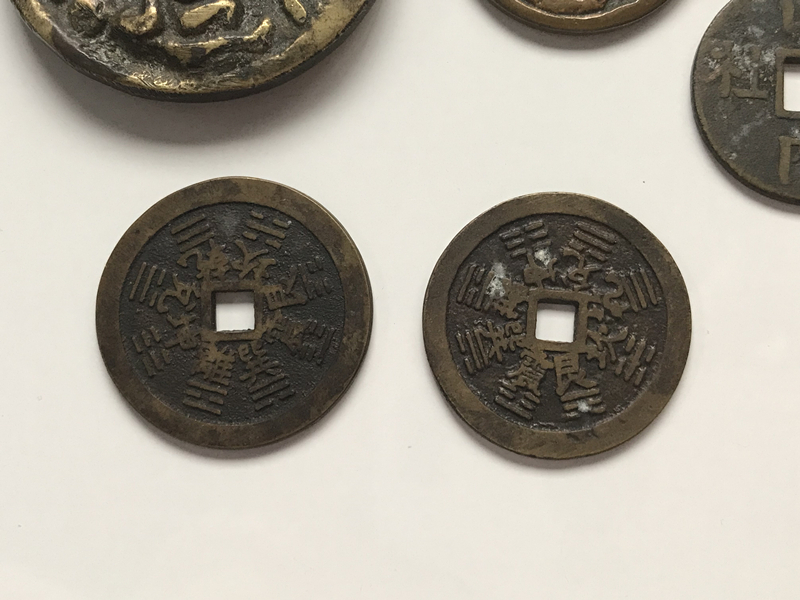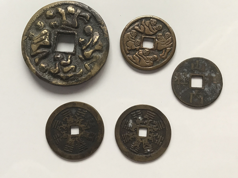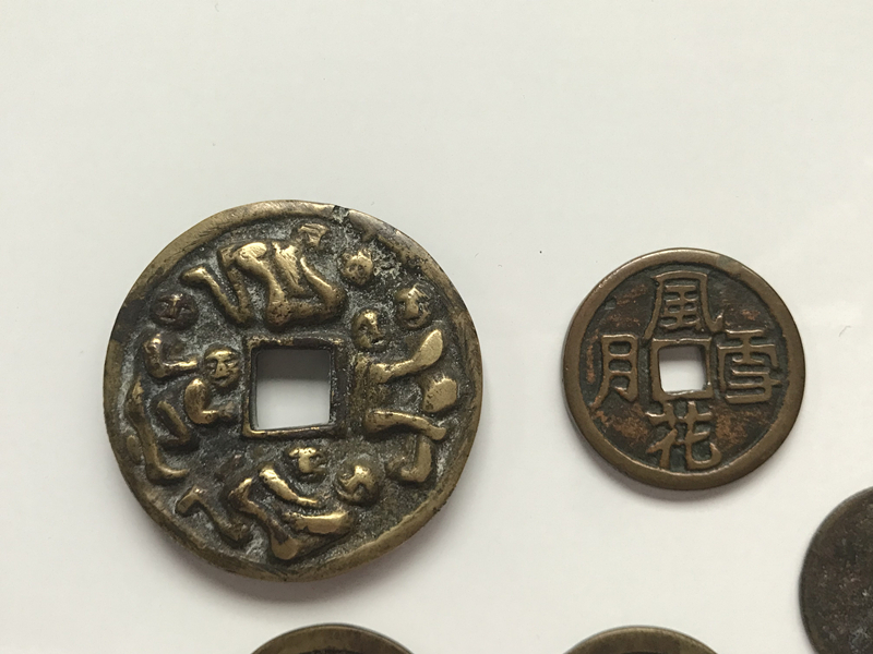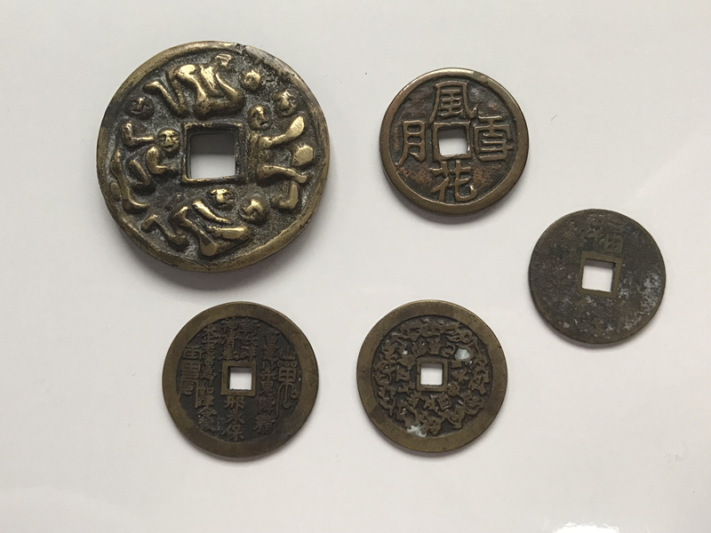 中国古銭 5枚 風花雪月 十二干支 八卦 重さは66.6g  穴銭 中国古銭 福銭 絵銭 古銭 穴銭 希少