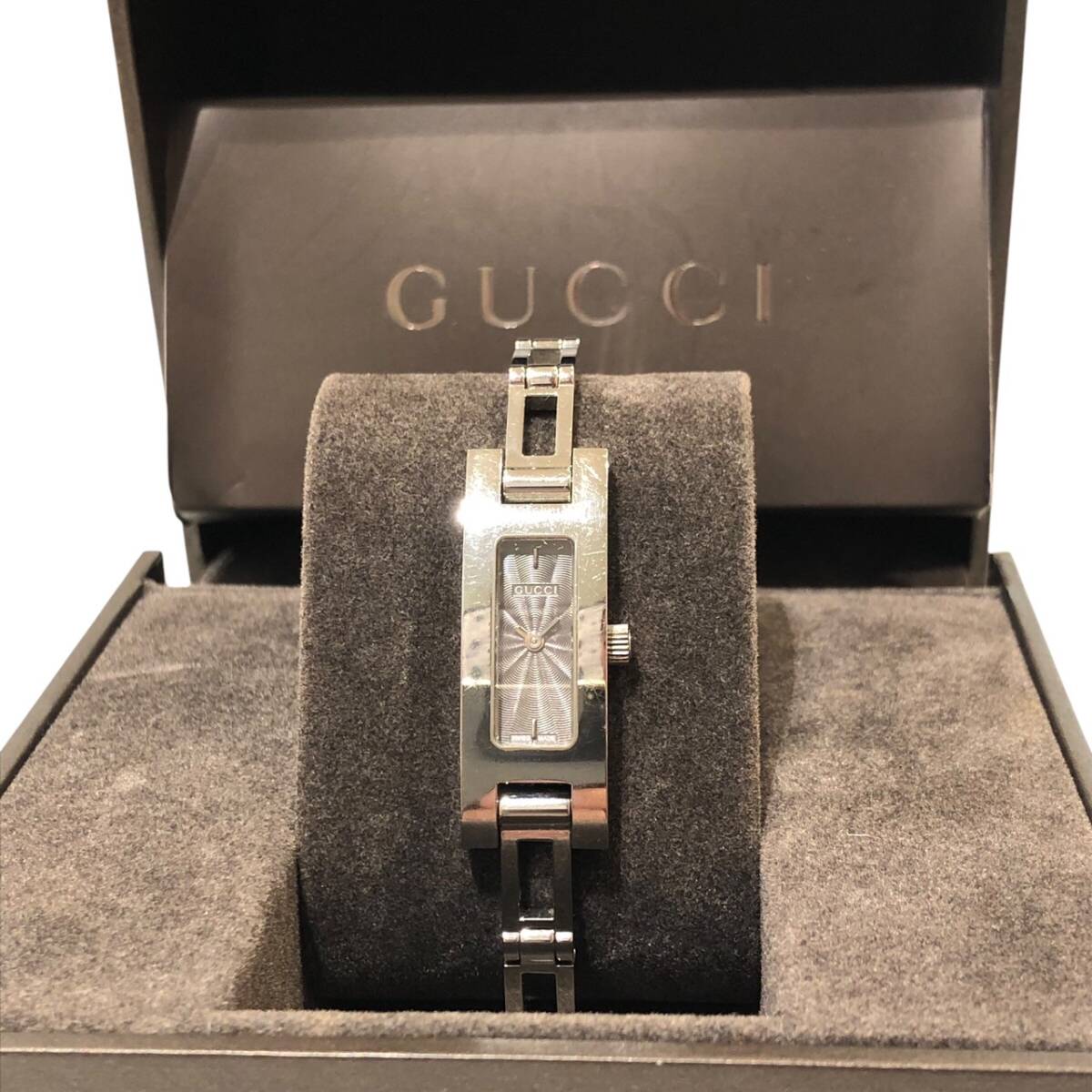 | グッチ 【クォーツ】3900L QZ ブラック文字盤 バングルウォッチ レディース腕時計 シルバーカラーベルト |