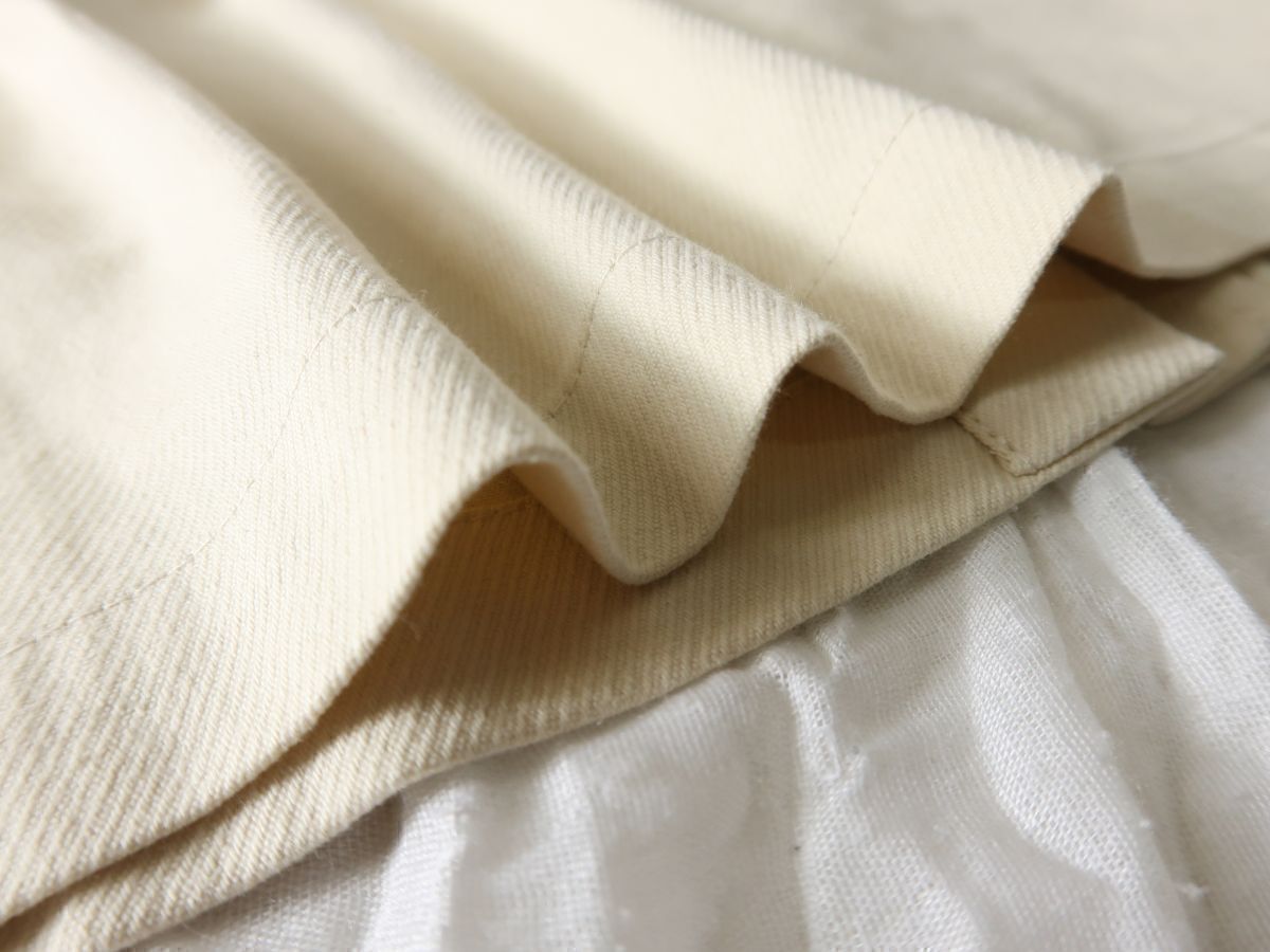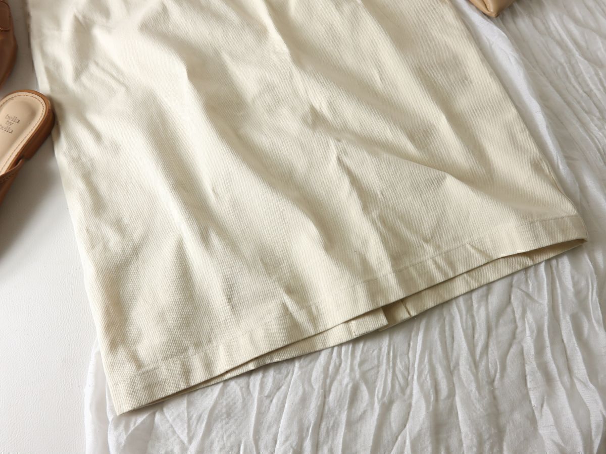 綿素材でオールシーズン使える厚み。裏地はついていませんが、透け感もなくさらっと1枚で着れます。