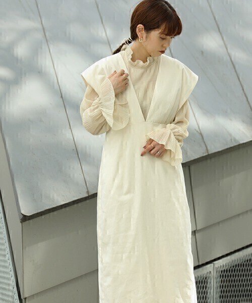 シアーインナーを入れて抜け感を出した着こなしがオススメ!秋冬はニットやタートルを入れても大人っぽくコーデ出来ます。もちろんブラウス合わせも◎。お袖のボリュームがあるものを合わせるだけで可愛らしいです◎。