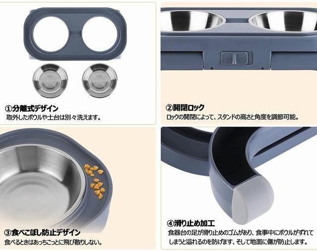 【素材】:ABS+ステンレス 【サイズ】:掲載サイズ表をご参照ください。 猫食器台の足が180度調節可能で、角度を調節しながら高さも調節できます。猫や小型犬の身長に合わせて高さを調節することができます。組み立てが不要で使いやすいです。 猫食器台の本体は高品質のABSで作られ、菌の繁殖には抑える効果があります。 防水性に優れ丈夫です。ペットボウルはステンレス素材を採用しており、軽くて壊れにくく、錆びにくい、耐久性は抜群です。プラスチック製より安全衛生ですし、食べ残しなどが落ちやすいのでとっても洗いやすいです。サッとお手入れができてとても楽です。更に、この猫フードボウル は全体に角のない設計で、アクティブな愛猫も目に当たるなど怪我する心配がありません。 海外インポートなので、細かいホツレや汚れが有る場合がございます。そして,宅配便で発送しますので,箱付きの商品は角部分が凹む可能性がございます。ご理解の上ご購入ください。 ★お支払い方法はYahooかんたん決済しか選べないので,ご了承ください。 ★発送について★ ①基本は佐川急便で,ご入金が確認取れたあと,3-7日以内に発送させていただきます。場合によって1日2日ぐらい延長する可能性がございます。ご了承ください。 ②小物は他の宅配会社に頼む可能性がございます。その場合は事前に連絡させていただきます。 ③送料に付いて:沖縄、北海道、一部離島は別途料金が発生します。ご了承ください ★注意事項★ ご質問へのご返信は、営業時間外、また担当者不在などによりご返信が遅れる場合もございますので、あらかじめご了承ください。 質問欄からの値下げ交渉、返信はご対応出来ませんので予めご了承下さい。 在庫が切れた時,オークション自体を早期終了する場合がございます。 商品発送完了時に評価を行っております。評価の必要ない方は予めご連絡くださいますようお願い申し上げます。 ご連絡をいただけないまま27日以上過ぎました場合、落札者様の都合で削除させていただく可能性がございます。その場合自動的に悪い評価がついてしまいますのでご了承ください。 オークション管理上、商品の同梱の際の送料はオークション毎にかかります。ご了承お願いいたします。