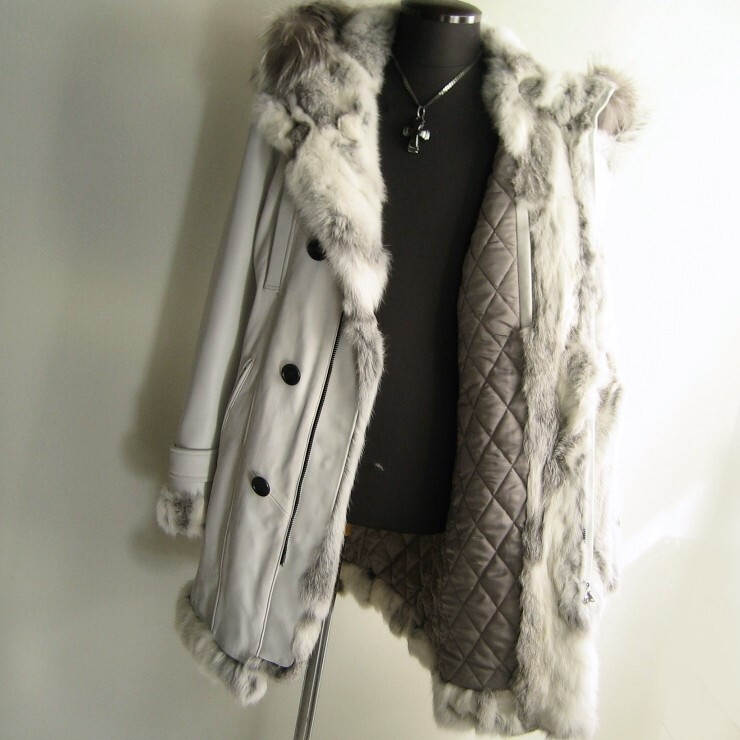 ■チンチラ風のラビットパッチプレートと衿周りのシルバーフォックスファーでゴージャス感を演出したオリジナルブルゾン