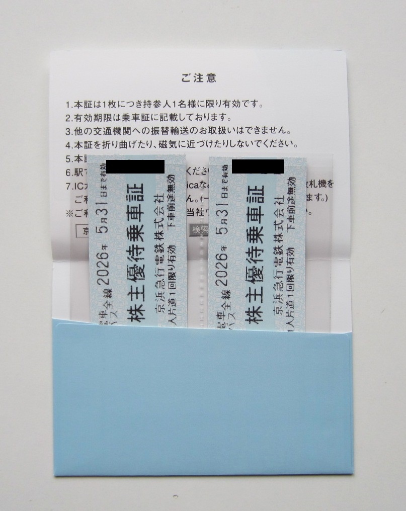 京浜急行電鉄株主優待乗車証です。有効期限は2026531日までです。2枚セットです。詳細は京浜急行電鉄のホームページをご覧ください。