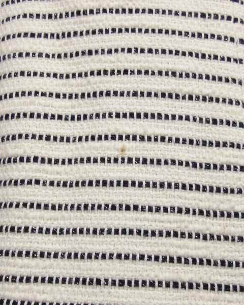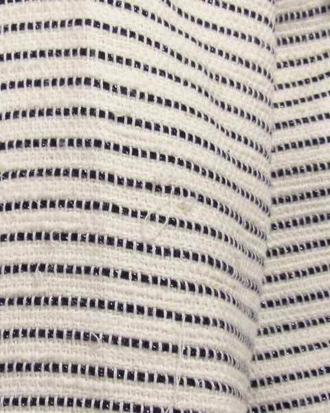 | すっきりシンプル、清楚なスタイル☆ 首周りから前身頃、袖、ポケットにフリンジがあり、 きちんと感がありますよ♪ スリット糸で上品な輝きがございます。 首元裏に汚れがございます。 アームホールに薄汚れがございます。 裏地に引きつれがございます。 全体の所々に点汚れがございます。 両袖にホツレがございます。 実寸 着丈約67cm 肩幅約37cm バスト約88cm 袖丈約60cm 【サイズ】:(2) 【素 材】:(表/綿77%レーヨン20%ポリエステル2%キュプラ1%、裏/ポリエステル100%) 【 色 】:(白、黒) 【程 度】:(B) 管理番号 7167-20160315-001 355 001 | ||||
