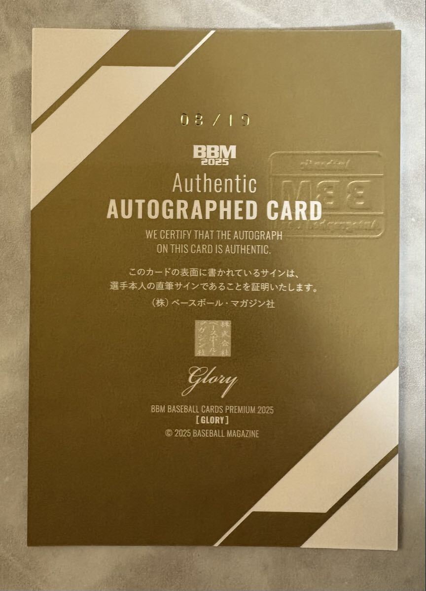 BBM 2025 GLORY 柳裕也 直筆サインカード 08/19