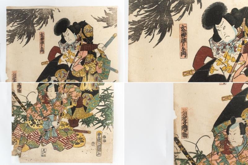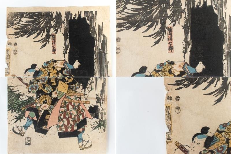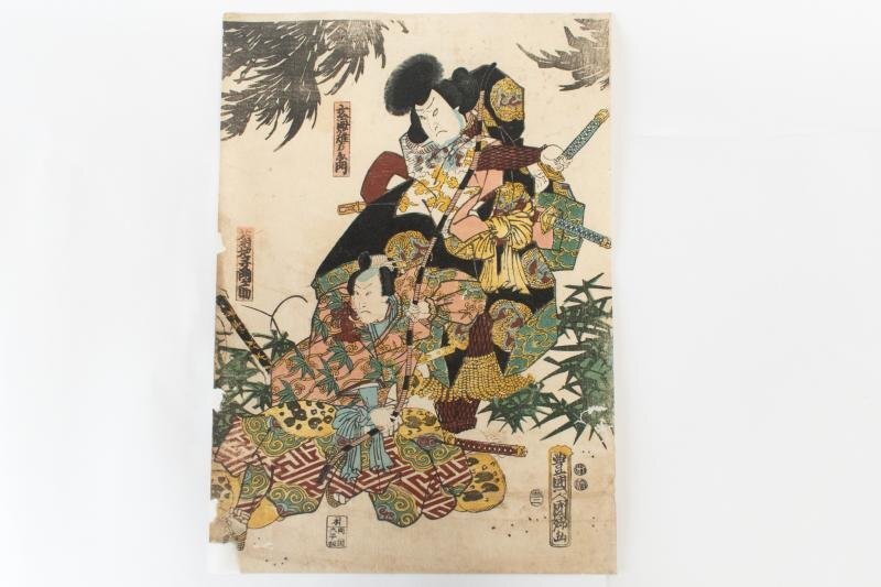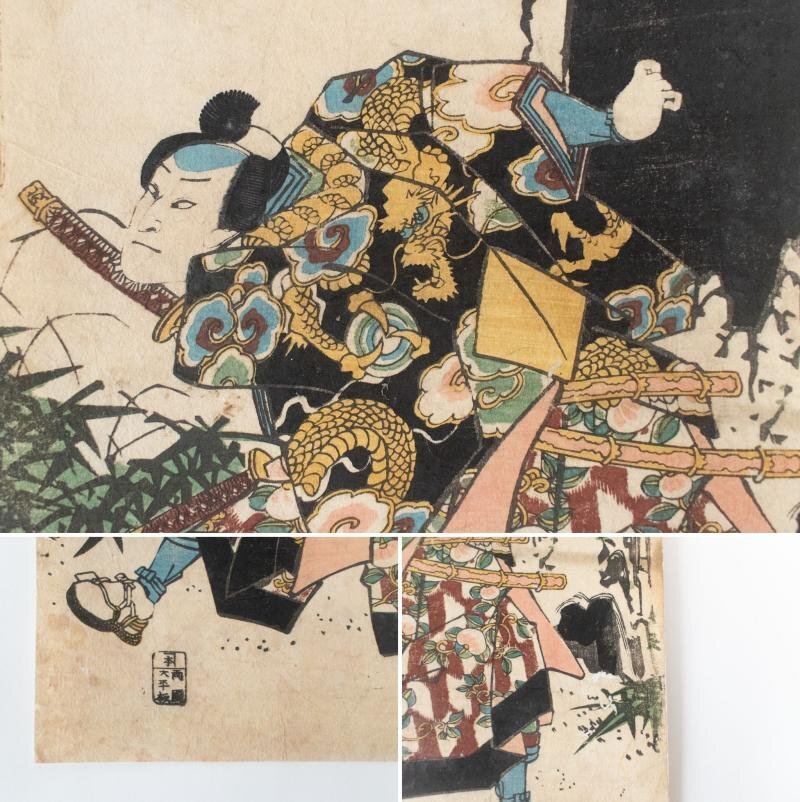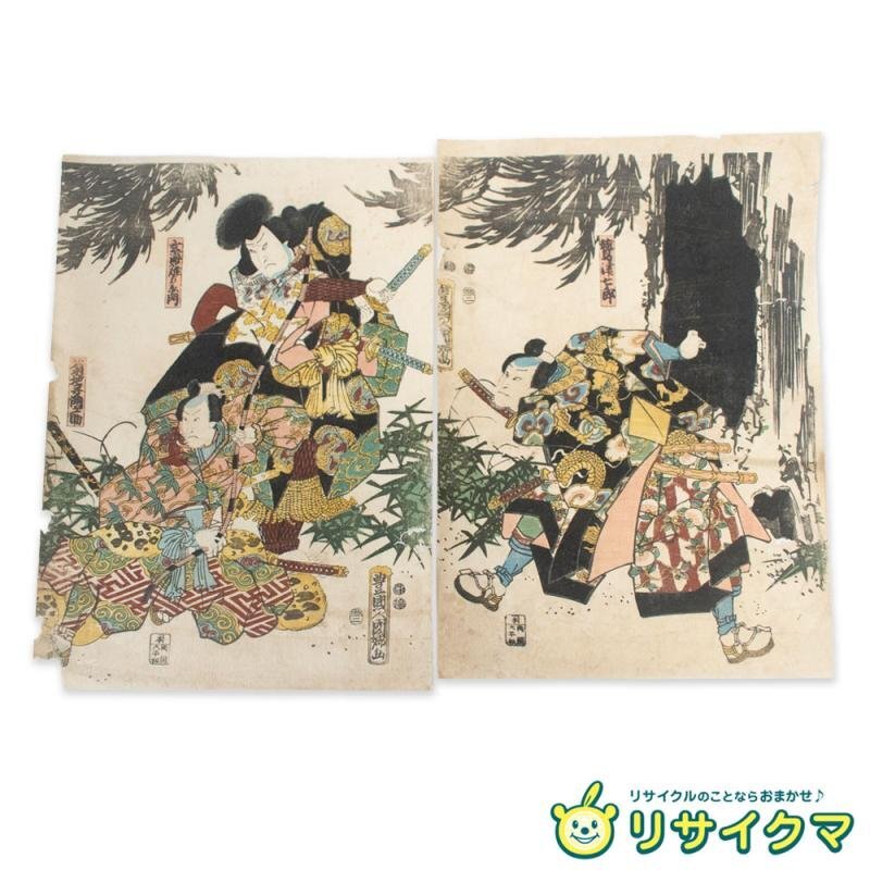 【中古】M▽歌川国郷 玄海灘右衛門 鷲津七郎 菊地多門之助 木版画 役者画 歌舞伎絵 浮世絵 錦絵 大判 不揃い (K00752)
