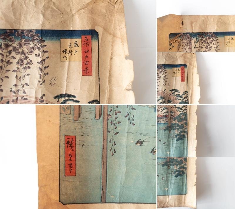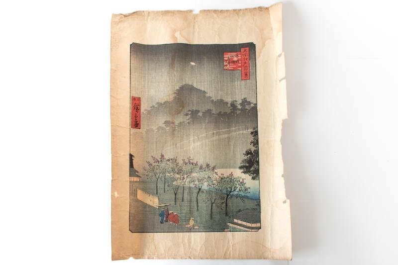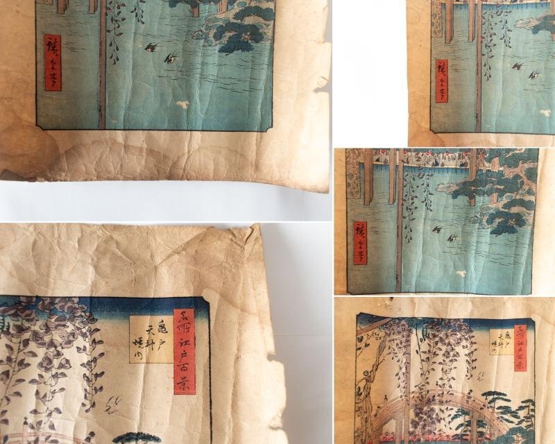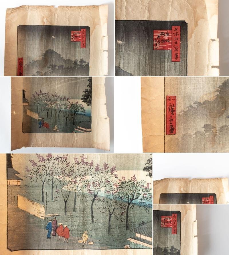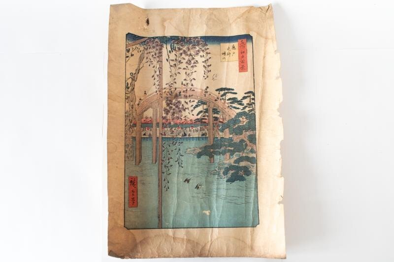 【中古】M▽二代 歌川広重 名所江戸百景 赤坂桐畑雨中夕けい 亀戸天神境内 1859年 木版画 浮世絵 錦絵 大判 (K00666)