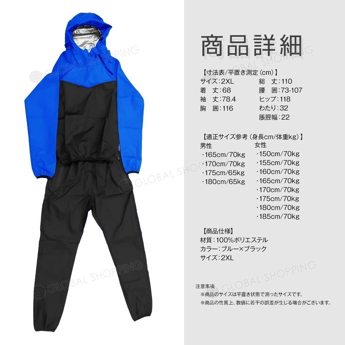 サウナスーツ ブルー 2XL メンズ レディース 男女兼用 スポーツ ウォーキング エクササイズ トレーニングウェア ダイエット 脂肪燃焼