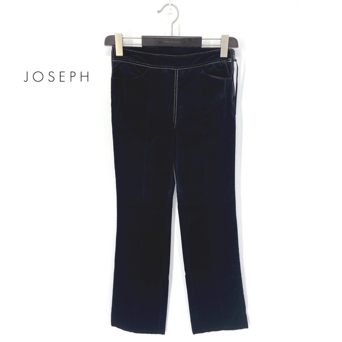 A6634/美品 春夏 JOSEPH ジョセフ コットン ベロア ベルベット スリム テーパード ワイドパンツ スラックス XS 黒/フランス製 レディース