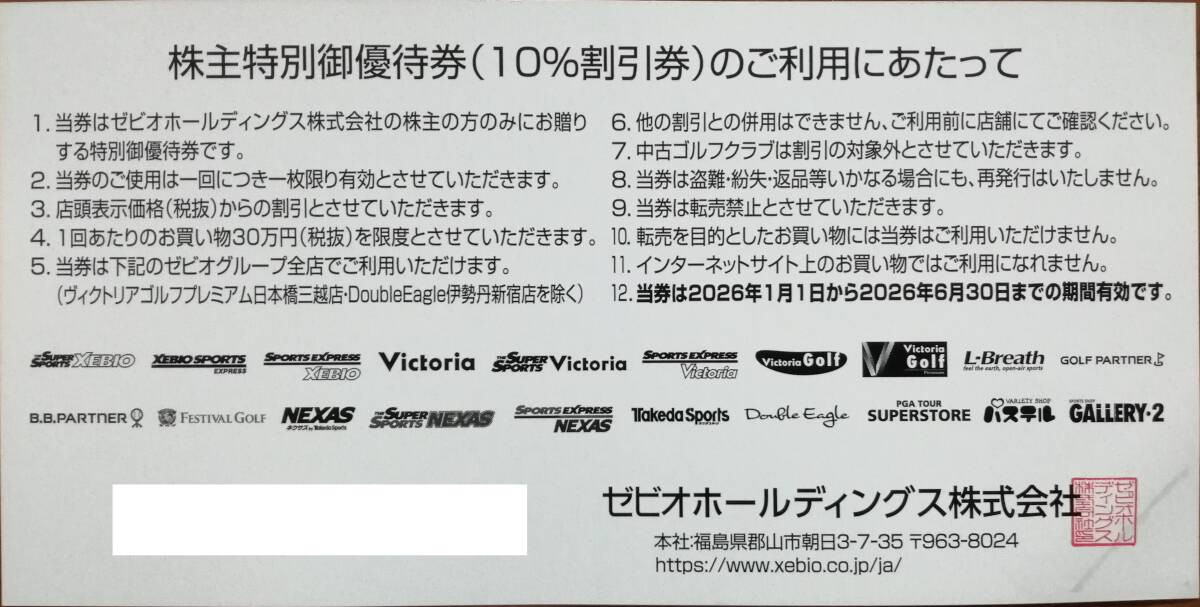 | ■ゼビオホールディングス㈱の株主優待券10%割引券1枚です。 |